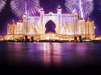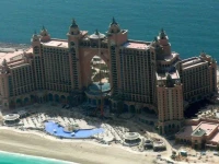 Отель Atlantis The Palm (Атлантис Те Пальм ). Сегодня является самым интересным, востребованным и неоднозначным по восприятию отелем Эмиратов. Единственный в мире по своей уникальности и масштабности.Отель-курорт занимает территорию в 46 гектаров, 17 из которых отведено под тематический водный парк развлечений Aquaventure. Расположен на одном из искусственных островов The Palm в Дубаи, в 25 минутах езды (20 км) от Международного Аэропорта Дубаи. Туристы могут добираться до Atlantis, The Palm через подводный тоннель c 6-полосным шоссе, выходящим на поверхность прямо рядом с курортом. Или можно оставить машину на принадлежащей курорту стоянке, у основания «ствола пальмы», и проехать на поезде через весь остров до конечного пункта – Atlantis, The Palm. На территории курорта расположены несколько ресторанов. Отельная часть курорта Атлантис - это 1539 шикарных номеров. Отель предлагает вниманию своих гостей беспрецедентный развлекательный центр, впечатляющую коллекцию бутиков и магазинов наряду с вместительными конференц-залами и переговорными. Однако самая необычная черта нового курорта – отеля Атлантис Палм - искусственная экосистема, одна из крупнейших в мире, населенная 65 тысячами морских животных, включая несколько десятков дельфинов.