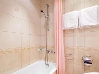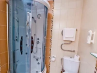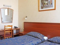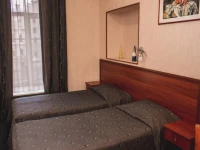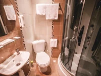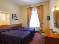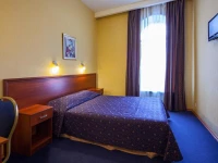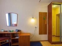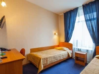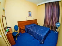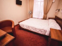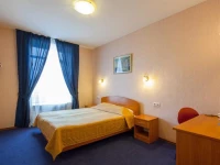 Небольшой уютный номер со всеми удобствами. Номер оснащен мебельным гарнитуром, телевизором, телефоном, бесплатным сейфом. Ванная комната оснащена душем, туалетом, раковиной, феном. Так же в ванной комнате есть необходимые принадлежности, такие как: мыло, шампунь, гель для душа, шапочка для душа, банное и лицевое полотенца.