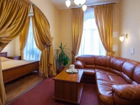 Двухкомнатный Номер улучшенной категории, просторный, с широкой кроватью, диваном, столом, шкафом, бесплатным сейфом. Просторная ванная комната с ванной-джакузи, туалетом, феном.В стоимость проживания включен континентальный завтрак.