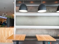 На цокольном этаже находится зал, где подают только завтрак. Это большой светлый зал, оформленный в современном стиле.