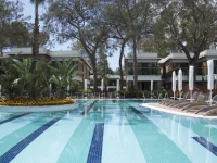 Nirvana Lagoon Villas Suites & SPA 5* - новый роскошный отель в курортном поселке Бельдиби. Он располагается в 36 км от аэропорта Антальи на побережье Средиземного моря. Территория отеля - более 15 гектаров, а длина пляжа - 900 метров. Слоган отеля "Привилегированная жизнь" находит свое отражение в каждой детали комплекса. Nirvana выгодно отличается как от соседних отелей, так и от прошлых отелей сети Crystal. Все здания здесь элегантно вписаны в природный ландшафт. Хвойные деревья, пальмы и цветы окружают гостей повсюду, создавая приятную прохладу и непередаваемую натуральную атмосферу. Гармоничным дополнением к этому служат Таврские горы, живописный вид на которые открывается почти из любой точки отеля. Большая часть номерного фонда - виллы, стоящие небольшими группами. Каждый такой блок имеет собственный бассейн с баром. Небольшое количество более скромных номеров располагается в главном корпусе. Самый же роскошный вариант, Villa Nirvana, находится вблизи пляжа и располагает собственным пирсом.