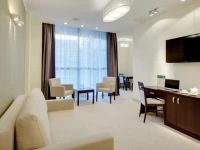 Люкс - это комфортабельный двухкомнатный номер, оснащенный электронным сейфом, двумя ЖК-телевизорами и телефонами. К услугам гостей наборы для приготовления чая, электрочайник, мини-бар. В гостиной находятся шкаф для одежды, диван, мягкое удобное кресло и журнальный столик, располагающие к приятному отдыху и общению.