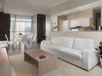 Двухэтажные президентские апартаменты общей площадью 250 кв.м. находятся на верхнем этаже отеля, откуда открывается прекрасный вид на морское побережье и Олимпийский парк. В просторном номере к услугам гостей терраса с удобной мебелью из ротанга, гостиная, 2 спальни с большими кроватями и плазменными телевизорами (62 дюйма), хаммам и две ванные комнаты.