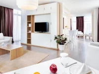 Бизнес Апартаменты - это номер класса люкс для деловых поездок или отдыха, площадью 95 м². В просторном номере расположена роскошная гостиная и спальня с джакузи.