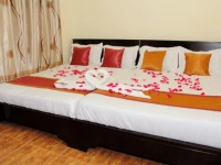 Номера не новые, но при этом достаточно чистые. Жили вдвоем у нас были две двухместные кровати. В номере есть все необходимое: сейф, фен, полотенца, средства личной гигиены (зубная щетка, паста, расческа, мыло, шампунь и даже ватные палочки для ушей), чайник, вода и каждый день пополняющиеся з