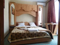 В номере есть вся необходимая мебель - двуспальная кровать ортопедический матрас на основе кокосовой стружке, стол и стулья, тумбочка, платяной шкаф, зеркало, балкон.