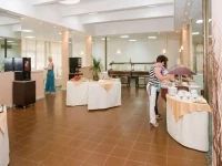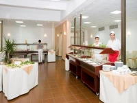 Ресторан предлагает большой выбор блюд национальной и европейской кухонь. Он вмещает около 120 человек и еще 50 на открытой террасе.