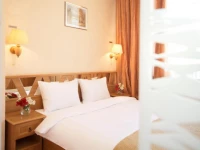 Скромный, но весьма достойный и стильный отель, расположенный в центре города. Номер маленький, но достаточный для ночлега. Все исправно работало. Повсюду веселые надписи типа «полотенце для ваших ножек», «полка для вашего чемоданчика» и т.п. На reception и в ресторане по телевизору в режиме non-stop транслируются кадры известных зарубежных и советских кинокомедий (Чарли Чаплин, Харольд Ллойд, Бе