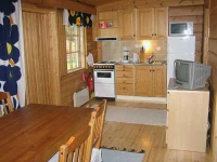 Гостиная с камином, совмещенная с кухней, спальня (2 раздельные кровати + кровать сверху), сауна, душевая и туалет.