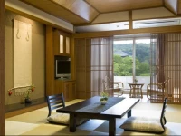 Все номера в японском стиле с татами. Существует гостевая комната с открытым небом, и открытая ванная онсен.