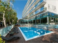Отель Aqua (Аква) 4* расположен в районе Марина Чентро города Римини, в 8 км от аэропорта, в нескольких шагах от берега моря. Отель расположен вблизи основных развлечений города, дискотек, магазинов и рестораов.