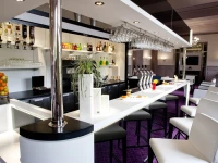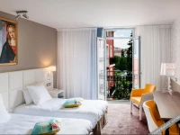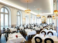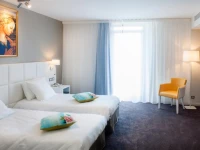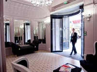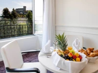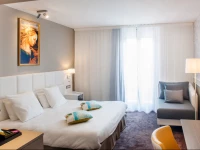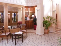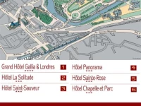 Отель был построен в начале 20 века, и сохранил дух 20х годов в хрустальных канделябрах. теплых тонах и деревянной отделке. Мебель также несет в себе дух Прекрасной эпохи, отлично сочетаясь с природным светом, которых струится сквозь расписные окна залов и ресторана. Летом в отеле работает терраса, откуда можно услышать паломников, приехавших к святыням Лурда.