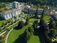 Отель Grand Hotel Quellenhof & Spa Suites 5* расположен в Швейцарии, в фешенебельном курорте Бад Рагац. Международный аэропорт Цюрих находится на расстоянии 110 км, до железнодорожного вокзала - 1,3 км. Курорт славится термальными источниками, целебные свойства которых известны еще с 1242 года, отличными полями для гольфа, горнолыжным курортом и красивой природой. Гости отеля могут увидеть чистые горные озера в ущелье Тамина, съездить на экскурсию в Цюрих, отправиться в поход по высокогорным маршрутам, подняться на пик Пицол, побывать в заповеднике Пяти озер. В Бад-Рагаце часто устраивают музыкальные вечера, выставки скульптур под открытым небом, проводится осенний винный фестиваль, где можно продегустировать местные вина. Главное здание отеля Grand Hotel Quellenhof предлагает гостям роскошные номера, высокое качество обслуживания, изысканную кухню ресторанов, услуги СПА-центра. Здание является памятником архитектуры, его стены украшают подлинники картин известных художников. В медицинском центре отеля Medical Health Center гости могут получить высококвалифицированное медицинское обслуживание в области ревматологи, ортопедии, кардиологии, неврологии, гинекологии и гастроэнтерологии.