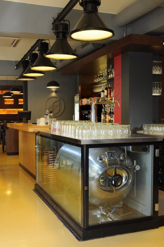 Ресторан продолжает традиции легендарной виноградской пивной Kravín. Он принадлежит сети ресторанов Gambrinus originál restaurant, которые объединяет пивной бренд Originál 1869, созданный в честь исторической для пивовара даты. Пиво Gambrinus Originál 10° разливается непосредственно из пивных танков.