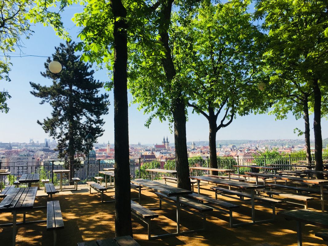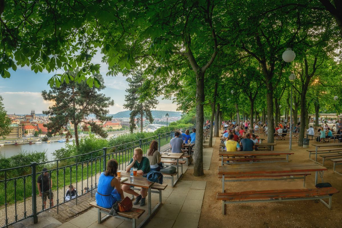 В саду у элегантного Летенского замка в стиле неоренессанс находится уютный пивной садик, откуда открывается неповторимый вид на Влтаву и пражские мосты. Это романтическое место, укрытое от прямых лучей солнца кронами вековых деревьев, идеально подходит для посиделок в дружеской компании за кружкой пива. Вечером очарование саду придает мерцающий свет фонарей.