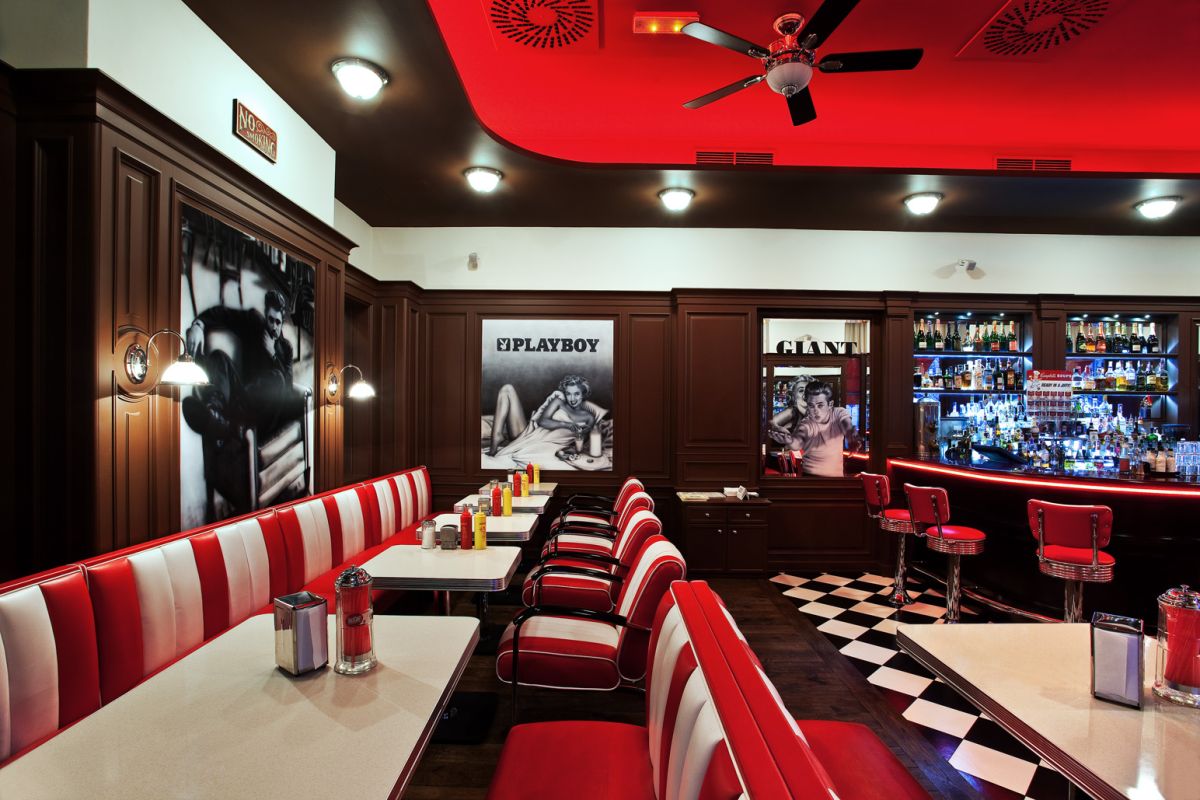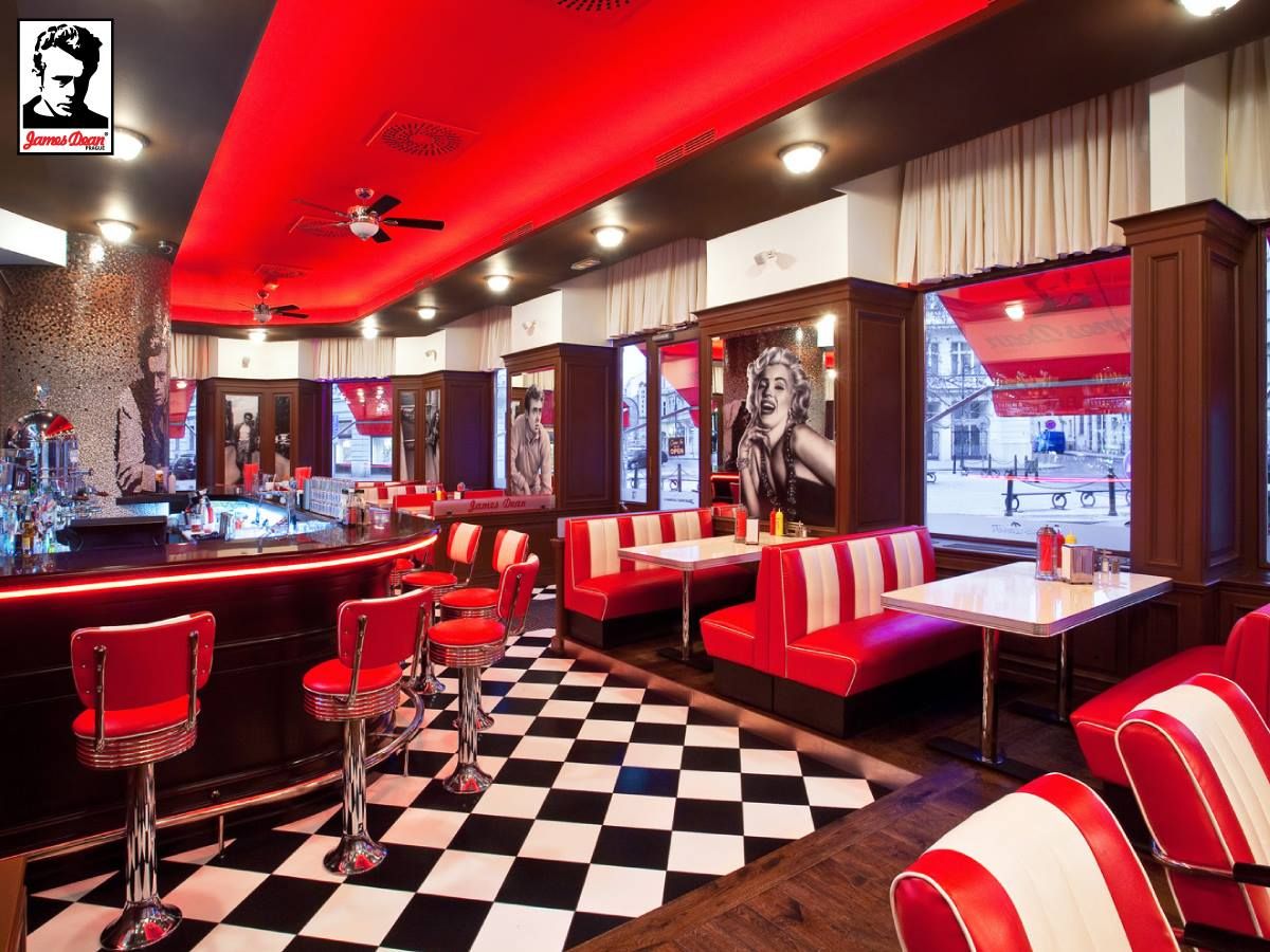 James Dean Prague Оригинальный бар с обеденным меню, расположенный в центре Праги. Обстановка стилизована в духе Америки 50-х годов прошлого столетия, а в интерьере присутствуют артефакты, связанные с культовыми личностями американского кинематографа, – Джеймсом Дином и Мэрилин Монро.