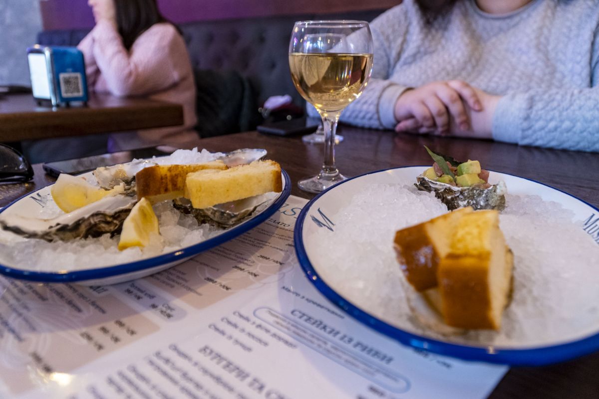 В Mushlya можно заказать деликатесные морепродукты за 1-5 евро: огромные устрицы, морских улиток-булотов, всевозможные креветки, бургеры и сэндвичи, а главное — целое ведерко мидий в сливочном соусе с теплым багетом.