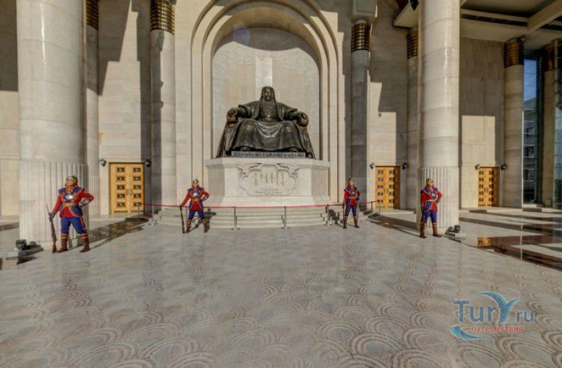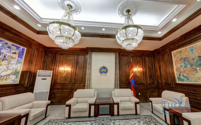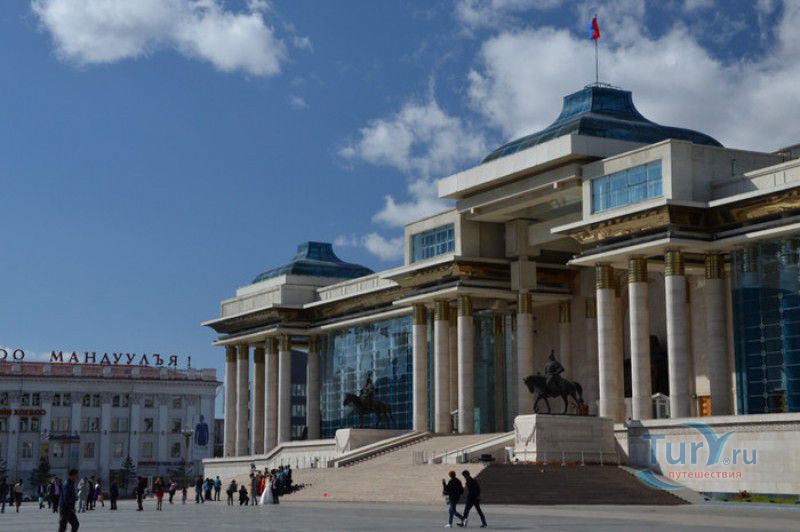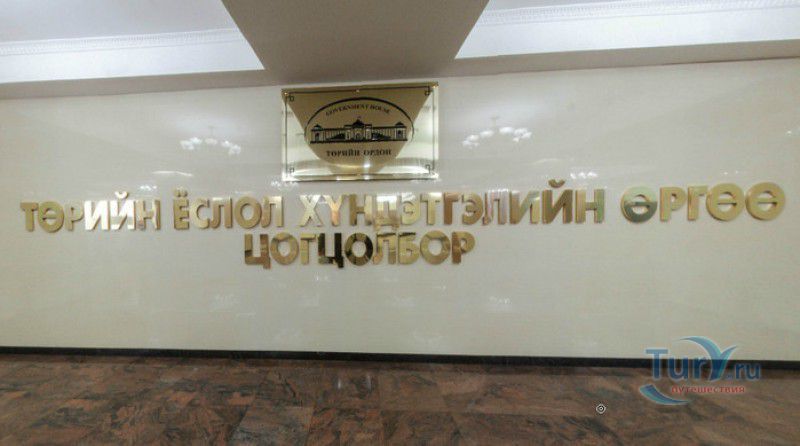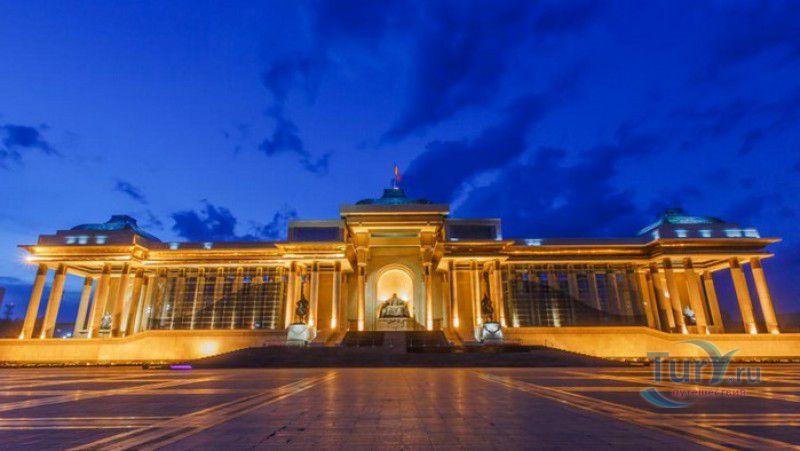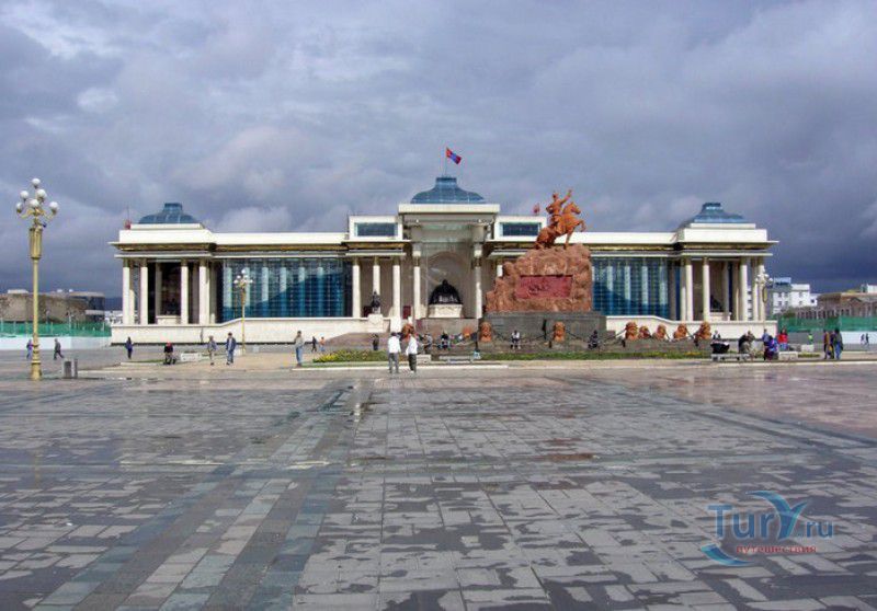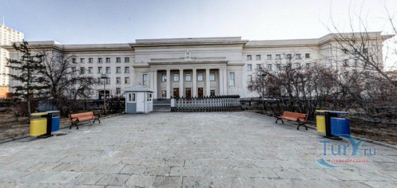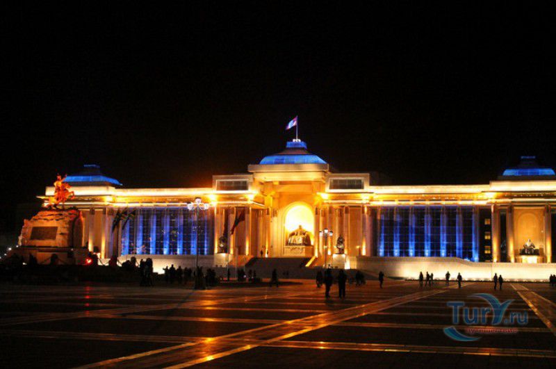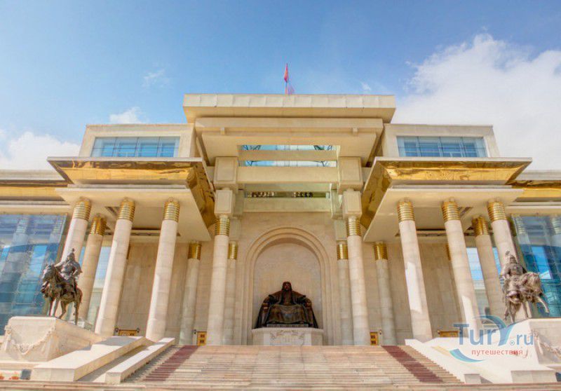 Дом Правительства Монголии расположен в самом центре Улан-Батора, на площади Чингисхана. Правительственное здание было построено в 1951 году на месте бывшего монастыря Зуун хурээ, основанного в 1639 году и разрушенного во время религиозных репрессий в тридцатых годах XX столетия. Сначала на месте монастыря построили народный театр Нардом, называемый в народе, благодаря своей большой зелёной куполообразной крыше, Зелёным театром. В 1949 году здание Нардома сгорело дотла из-за вспыхнувшего в нём сильного пожара. Двумя годами позже на его месте был возведен Дворец правительства Монголии по проекту архитекторов Щепетильникова, Павлова и Чимида. В 1952 году перед Домом правительства был построен мавзолей Сухэ-Батора и Чойбалсана. В ходе реконструкции 2005 - 2006 годов помпезное здание Дома правительства было значительно перестроено и осовременено. Был демонтирован мавзолей Сухэ-Батора, а на его месте воздвигнута колоннада с бронзовыми статуями Чингисхана, сидящего на царском троне, конными статуями его ближайших нукеров (генералов) - Мухали и Боорчу и статуями великих ханов Монгольской империи - Угедея и Хубилая. Колонны убраны за стеклянные панели, крышу венчают стеклянные купола, стилизованные под традиционные жилища монголов - юрты. У бокового фасада Дома Правительства установлен памятник Государственной печати Монголии. Само здание было перекрашено из серого в белый цвет. Площадь здания составляет 35 804 квадратных метра, в нём расположены залы заседаний Великого государственного хурала, Кабинета министров, Конституционного суда, залы для переговоров, встреч и приёмов иностранных делегаций, библиотека, ресторан, филиалы банков и почтовых отделений, магазины. В 2012 году в Доме Правительства открылся Музей монгольской государственности, зал которого расположен под статуей Чингисхана. В музее представлены исторические, культурные и археологические реликвии, в числе которых Государственная печать Великого монгольского государства, оружие, воинское снаряжение, монгольские флаги и награды, исторические документы, портреты монгольских правителей, картины, скульптуры.