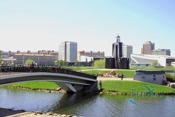 Небольшой горбатый мост с Троицкого предместья ведет на "Остров слез" («Остров мужества и скорби»).Здесь 3 августа 1996 г. был открыт памятник "Сынам Отечества, которые погибли за его пределами"Перед памятником - валун с бронзовой иконой Божьей Матери и текстом, поясняющим тему памятника. Этот валун в качестве закладного камня на месте будущего мемориала был установлен на острове еще в 1988 г. Памятник выполнен в виде храма, в основу очертаний которого положен первоначальный облик храма Ефросиньи Полоцкой, такой, каким он был в XI веке. Внутри памятника - четыре алтаря с высеченными именами 771 погибшего воина-афганца. Возле каждой фамилии родные и близкие погибших при посещении мемориала могут установить зажженную свечу. Внутренняя поверхность стен памятника и его купол расписаны библейскими сюжетами. Здесь же изображены архангелы Михаил и Гавриил, считавшиеся покровителями белорусского воинства еще со времен Грюнвальдской битвы. В центр креста, возвышающегося над храмом, вставлен рубин. Фонарь, специально установленный над полом, освещает крест снизу. Светящийся рубин символизирует кровь Христа и кровь павших воинов. В центре храма находится Святое место. Здесь в землю заложена афганская земля, омытая кровью наших солдат, а также земля привезенная с их могил. Здесь же храниться капсула со списком погибших и с обращением к потомкам. К пяти колоколам прикреплены металлические струны, гудящие на ветру, звонят колокола Памяти по душам погибших белорусских воинов.