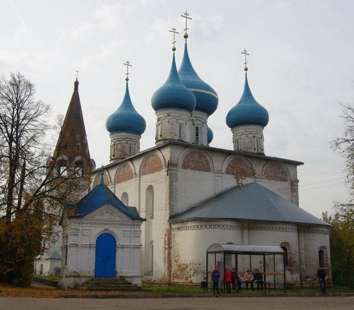 Благовещенский собор в Гороховце возведен в 1700 году на средства местного купца Семёна Ершова. Рядом возвышается отдельно стоящая ровесница храма - шатровая колокольня, в которой устроен склад реставрационного участка. Двусветный Благовещенский храм, обладающий крупными монументальными формами, увенчан каноническим пятиглавием. Большие и гладкие плоскости его наружных стен равномерно членятся широкими лопатки на три прясла. В полукружиях закомар видны остатки фресковой живописи. Соборная Благовещенская церковь вместе с теплой Предтеченской, шатровой колокольней и часовней составляли единый комплекс.