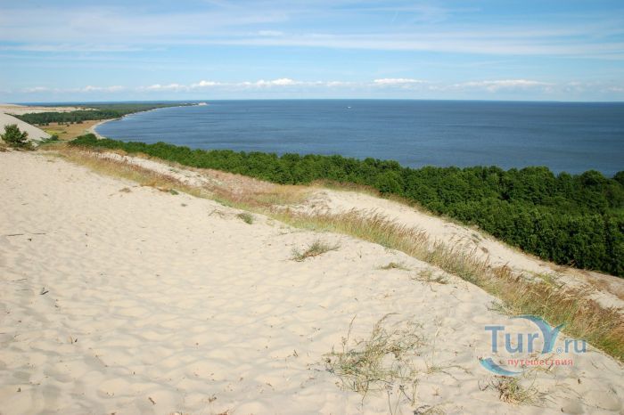 Куршская коса – узкая и длинная песчаная полоса суши коса саблевидной формы, отделяющая Куршский залив от Балтийского моря. Простирается от города Зеленоградск Калининградской области до города Клайпеда. Самое узкое место на косе - всего 400 метров (недалеко от поселка Лесное), а самое широкое - около 4 километров (в районе поселка Рыбачий). Последний поселок - Морское, недалеко от него проходит граница с Литвой. Рядом с этим поселком находится одна из самых высоких дюн в Европе - дюна Эфа. Куршская коса является Национальным природным заповедником. Это место идеальной экологии и красивейшей природы. Коса - уникальное природное образование, возникшее примерно 7 тысяч лет назад из нескольких островов. Южные 48 км косы принадлежат Калининградской области, северные 50 км - Литве.