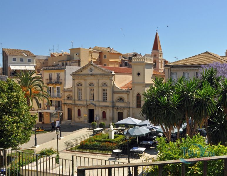 Католический кафедральный собор Святых Иакова и Кристофера расположен на восточной стороне Ратушной площади (Town Hall Square). Он был построен в 1588 году. Классическое венецианское здание XVI века является одним из лучших образцов архитектуры барокко в Греции.