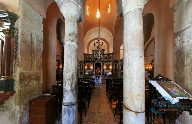 Интерьер церкви был когда-то полностью расписан фресками XI-XIV веков. Мраморные колонны и алтарь в стиле барокко относятся к XVIII веку, колокольня - к XVII веку. В церкви сохранились иконы (XVI век) кисти Эммануила Тзане - яркого представителя Критской школы иконописи.