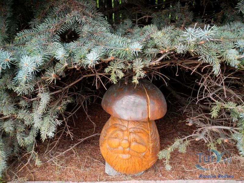 На выезде из города Виноградов, прямо на трассе есть необыкновенное, сказочное место, от которого невозможно отвести глаз. Это резиденцией Виноградовского лесничества. Пройдя на территорию попадаешь с любовью оформленный фантастический уголок, который пленит и не отпускает из своих владений. Под каждым кустиком или деревом взгляду открываются замечательные фигурки вырезанные из дерева. И каждая из них вызывает улыбку и маленький восторг. Здесь и гуцульская пара влюбленных, и грибочки с улыбкой, и доброжелательные фигурки лесных хранителей, а завершает все это очарование композиция с украинским возом, доверху заполненным богатствами выращенными на земле. Рядом на одной территории с лесничеством стоит небольшая церковь, куда можно прийти и остаться наедине со своими мыслями. Она, как духовное наследие, как хранительница чистоты и добра, невидимо окутывает красоту этих мест и защищает.