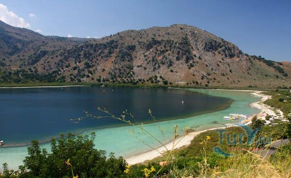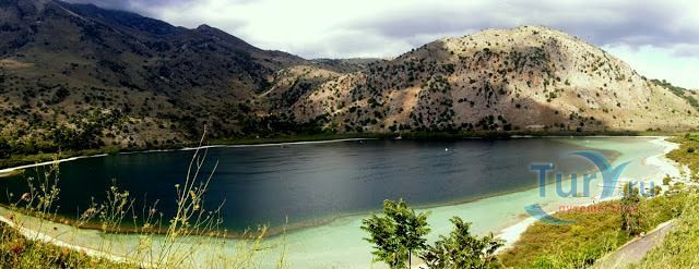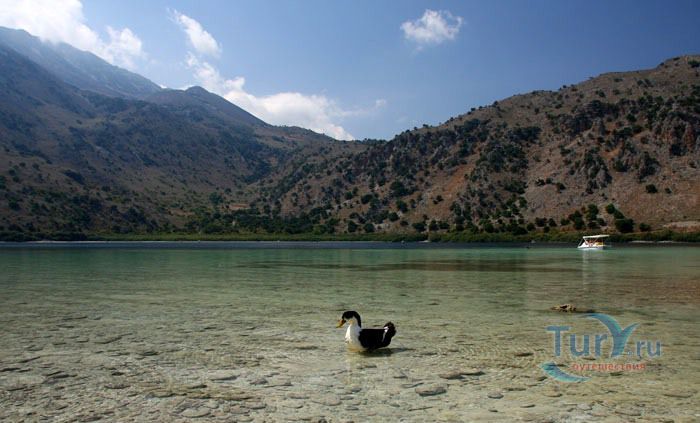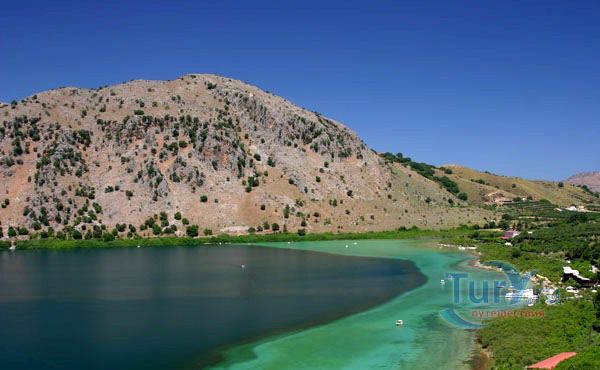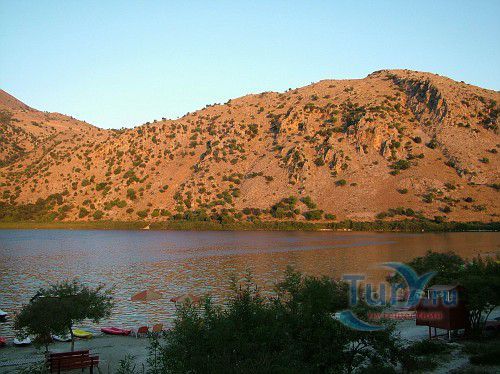 Озеро Курнас - озеро естественного вулканического происхождения, которое находится недалеко от деревни Курнас. В средние века озеро носило название Коресия (неподалёку находился храм, построенный в честь Афины Коресийской), нынешнее название - "Курнас". Озеро является крупнейшим пресноводным озером на острове Крит , окружность - 3,5 км, площадь чуть более 1,2 кв.км, наибольшая глубина - 25 м, дно озера на 3 м ниже уровня моря. С двух сторон озеро окружено Белыми горами, спускающимися прямо в воду, а вода здесь очень чистая и пресная. По берегу прогуливаются важные и шикарные гуси разных мастей, встречаются цапли и большие бакланы. В озере живут редкой породы двухцветные водяные черепахи с узорчатым панцирем - Бугорчатая черепаха. Правда, редко попадается на глаза, а вот красивые красные рыбы и белые полосатые, доставят Вам огромную радость. Из озера вытекает река Армирос, а южнее озера в местечке Кератида находится интересная пещера Курна, с несколькими входов на разных уровнях. Озеро Курнас и окружающая его природа, находятся под защитой экологической сети "Натура-2000".