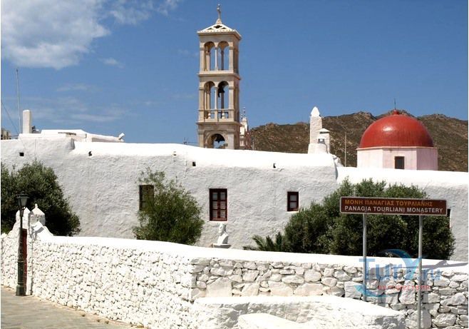 Археологический Музей Миконоса славится богатой коллекцией сосудов, представляющей кикладские традиции в изготовлении керамических изделий начиная с геометрической эпохи и до VII в. до н.э. с изображением Троянского коня и падения Трои. Интерес представляют также артефакты, найденные при раскопках некрополя, расположенного на соседнем острове Риния.