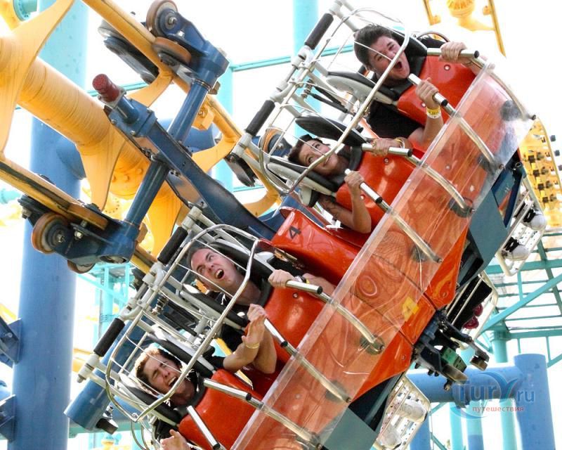 Вообще, парк разделен на семь областей: Международная улица, Medieval Faire, Action Zone, Hanna-Barbera Land, White Water Canyon, Splash Works и детскую зону. При входе в парк вы попадает на Международну улицу. С обеих ее сторон находятся различные магазины и рестораны. В конце улицы вас ждет главное украшение парка - Чудо-гора. Для того чтобы обойти все зоны парка вам придется потратить весь уик-энд, но, даже прокатившись на паре аттракционов, вы зарядитесь энергией на многие недели вперед!