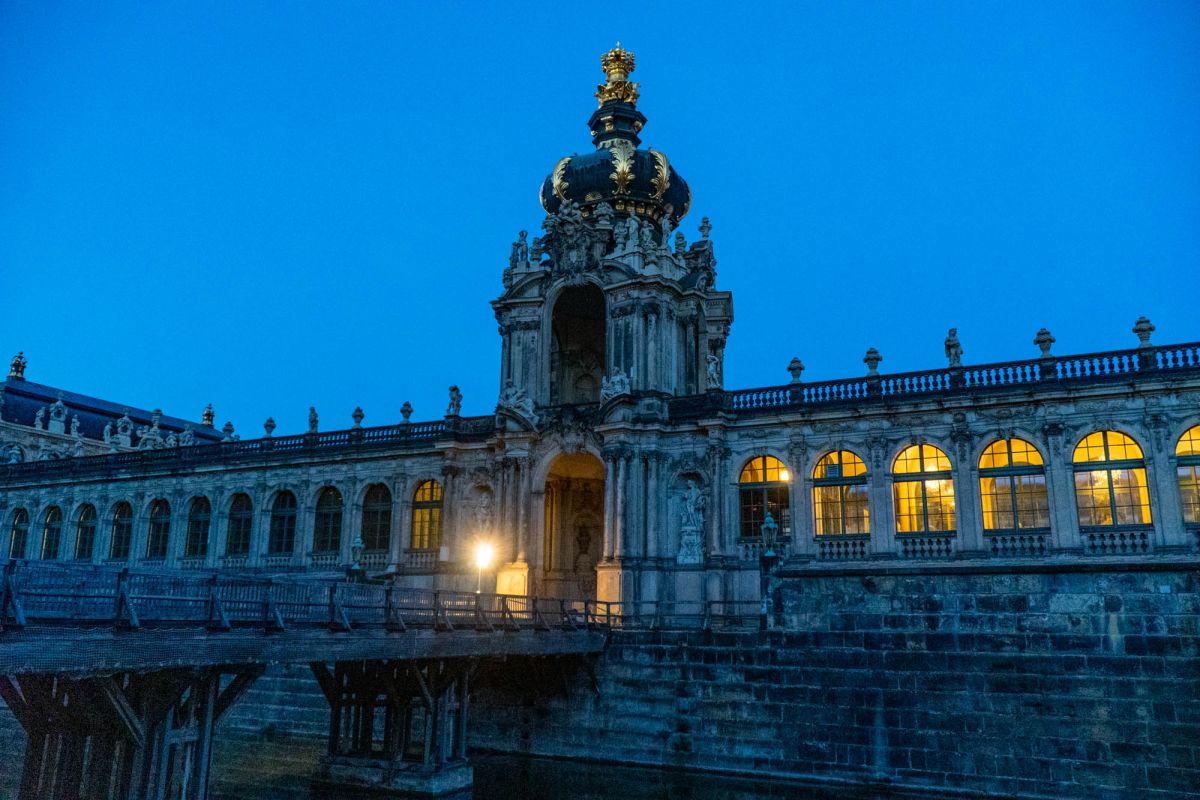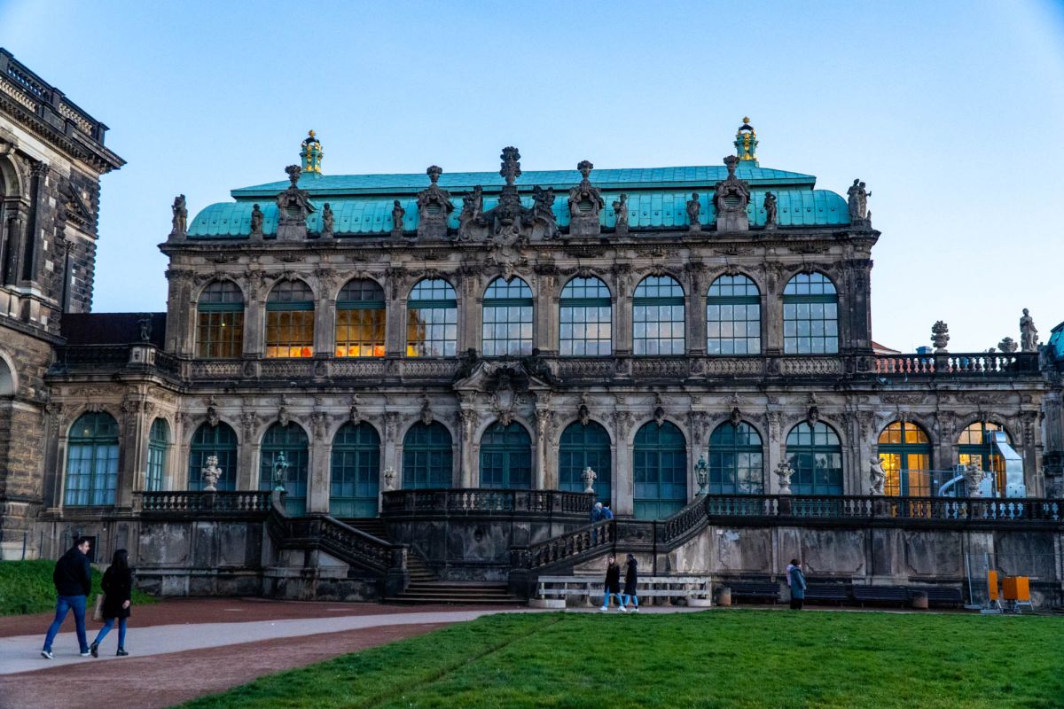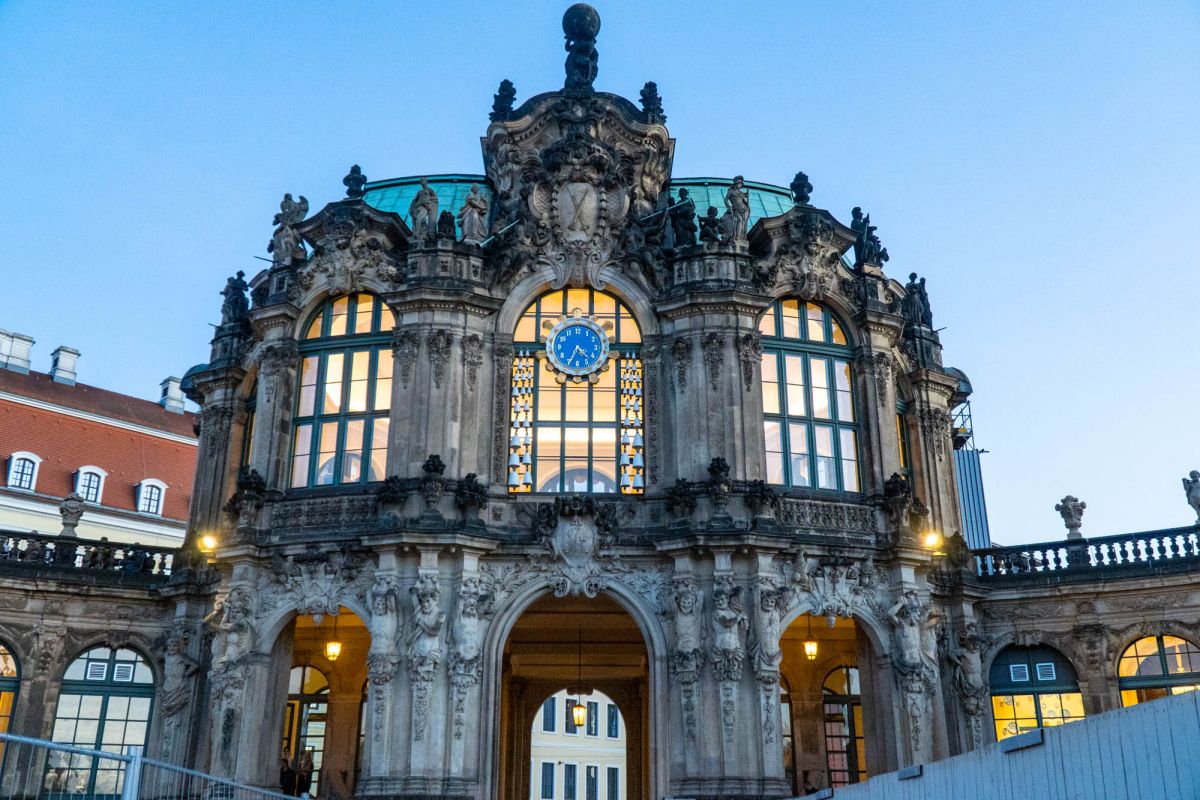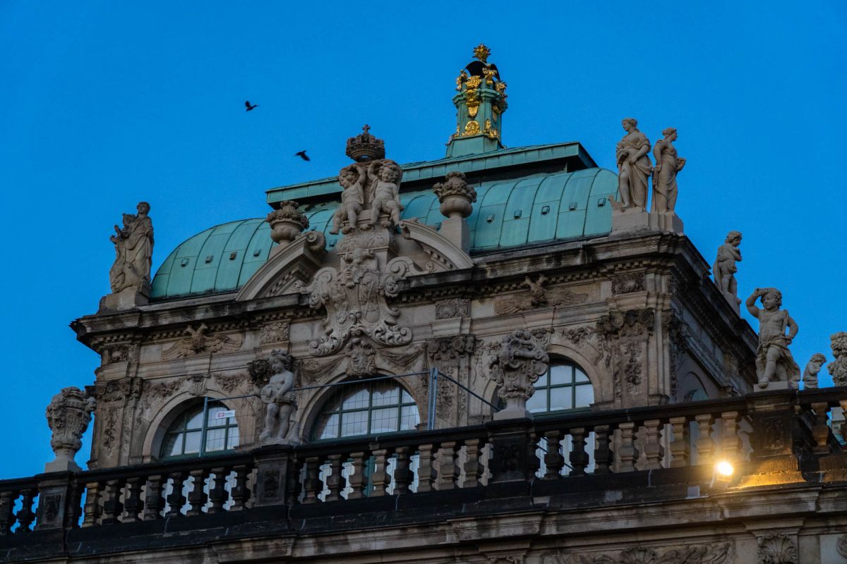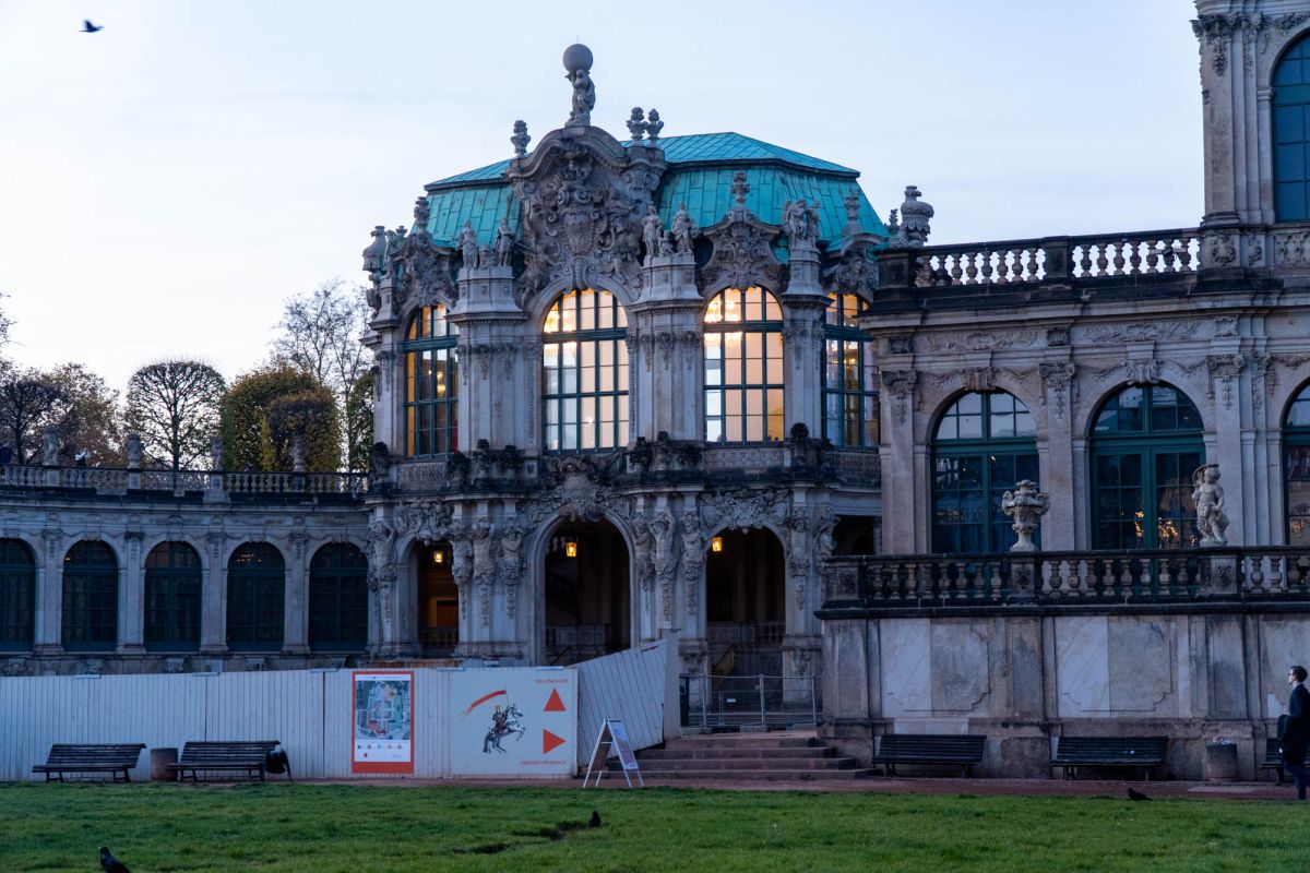 Дрезденский Цвингер - это символ столицы культуры, которая на протяжении столетий как магнит притягивала к себе поэтов и художников, зодчих и музыкантов. Дворцовый ансамбль, находящийся в Альтштадте (Старом городе) Дрездена (Германия), яркий памятник немецкого барокко (1711–1722, арх. М.Д.Пёппельман), состоящий из изящных нарядных павильонов, объединенных галереями, и здания Дрезденской картинной галереи, построенной в стиле неоренессанса (начата в 1847 Г.Земпером, закончена придворным архитектором Крюгером к 1855). Целый комплекс строений сгруппирован вокруг двора с фонтанами: прямые одноэтажные галереи сменяются дугообразными контурами ворот и павильонов. Южной границей Цвингера служат Прямые галереи и Коронные ворота, увенчанные королевской короной из золоченой меди, а северной – пристроенное в середине 19 в. здание Картинной галереи. С восточной и западной стороны композиция почти зеркально повторяется: Закругленные галереи в плане образуют подобие подковы, опирающейся на два небольших павильона. По центру западной «подковы» расположился Павильон на валу. Два небольших павильона, соединенных с ним Закругленными галереями, называются Физико-математическим (по названию коллекции, которая в нем находится почти 300 лет) и Французским, так как на его верхнем этаже размещались картины французских мастеров. За Французским павильоном, примыкающим к Картинной галерее, находится знаменитый грот – Купальня нимф, попасть в который можно, пройдя через первый этаж Французского павильона. Подобная композиция повторяется и на восточной стороне. В центре между обеими восточными Закругленными галереями расположен павильон, называемый Колокольным, так как по обе стороны часов, установленных в его среднем окне, висят белые колокола из мейсенского фарфора, бьющие каждый час. Небольшой прямоугольный павильон, примыкающий к Картинной галерее на восточной стороне, называется Немецким, так как в его верхнем зале расположен отдел немецкой живописи. Подобный же павильон, стоящий перпендикулярно Прямой галерее, – это Павильон, в котором размещается Музей фарфора.