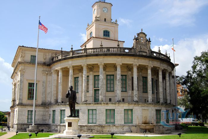 Мэрия города Корал-Гейблс была построена в 1928 году в стиле испанского ренессанса, любимого Мерриком и его коллегами. На ее полукруглом фасаде помещены гербы, изготовленные для нового города Денманом Финком, дядей Джорджа Меррика. Финк был ответственным также за создание настенной росписи с изображением четырех времен года., украшающей купол колокольни.