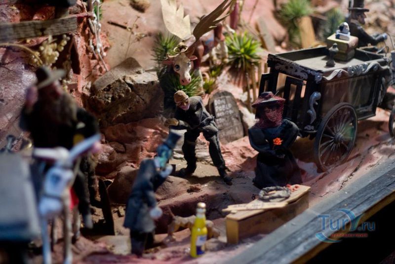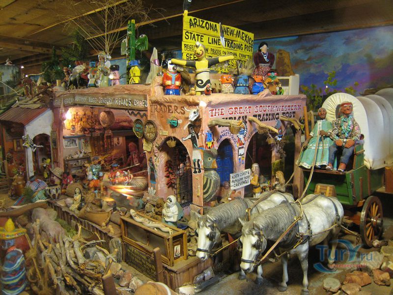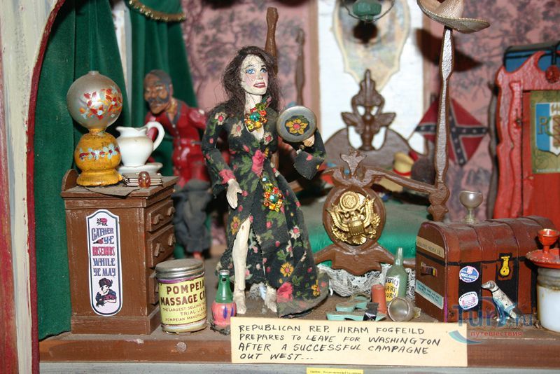 Главными экспонатами являются миниатюрные изделия ручной работы: городок американского Запада образца 80-х годов XIX века, с 26 зданиями и 300 жителями-фигурками и цирк с тремя аренами, фургонами и прочим цирковым антуражем. Также в музее есть старинные игровые автоматы, необычные куклы, много других предметов антиквариата. Стены музея собраны из более чем 50000 пустых бутылок.
