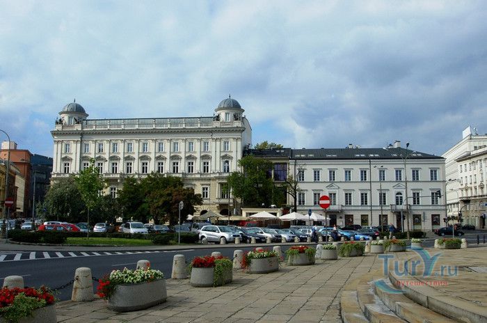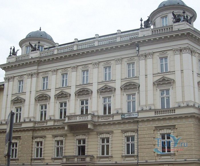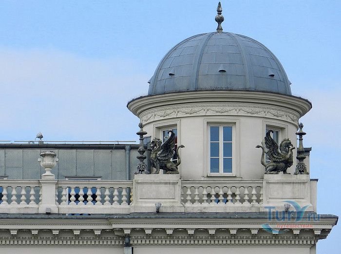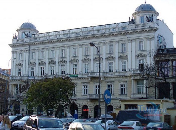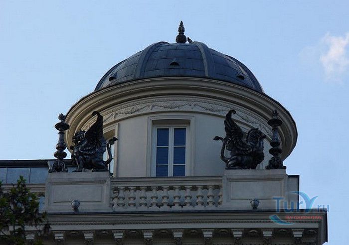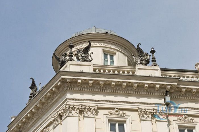 Дом под Грифами, расположенный на площади Трёх Крестов в Варшаве, принадлежит к числу архитектурных и исторических достопримечательностей Варшавы. Дом был построен для известного варшавского кондитера Юлиана Фукса в 1886 году по проекту архитектора Иосифа Гуса. Здание построено в стиле позднего ренессанса, круглые купола в углах дома созданы по подобию купола варшавского дворца Кроликарния, а металлические скульптуры грифонов напоминают статуи этих мифологических существ, украшавших здание Рейхсбанка в Берлине. В 1944 году, во время Варшавского восстания, здание значительно пострадало от пожара, сохранились только один купол и пара грифонов на углу дома, выходящего на улицу Брацка. После войны дом был восстановлен частично, полная реконструкция была проведена лишь в 2005 году, в ходе которой был отремонтирован фасад, отстроены заново два купола и установлены скульптуры грифонов. В Доме под Грифами в настоящее время размещаются офисы, на первом этаже - популярное варшавское кафе-бар "Шпилька".