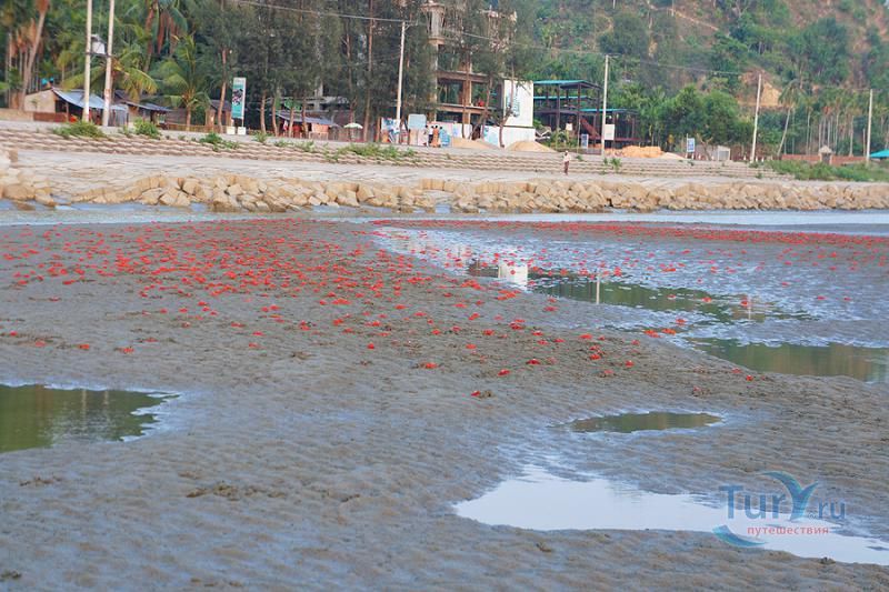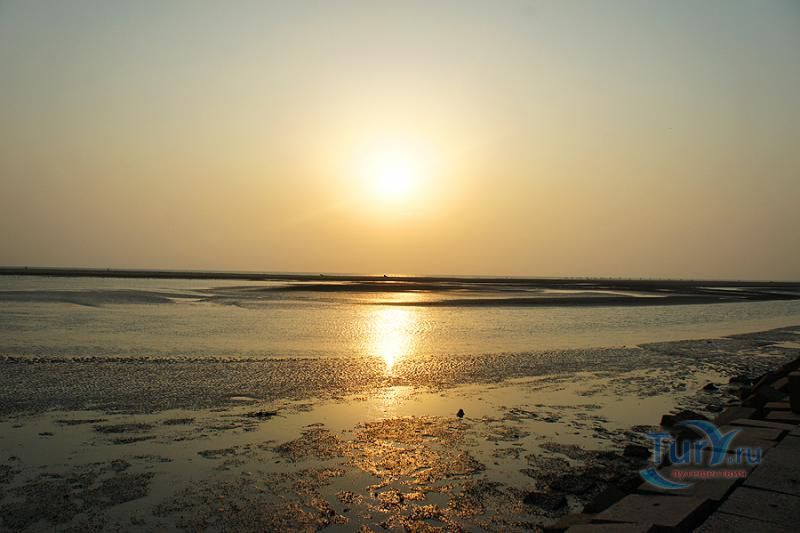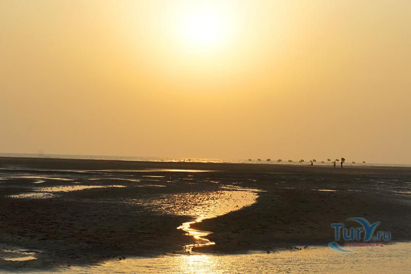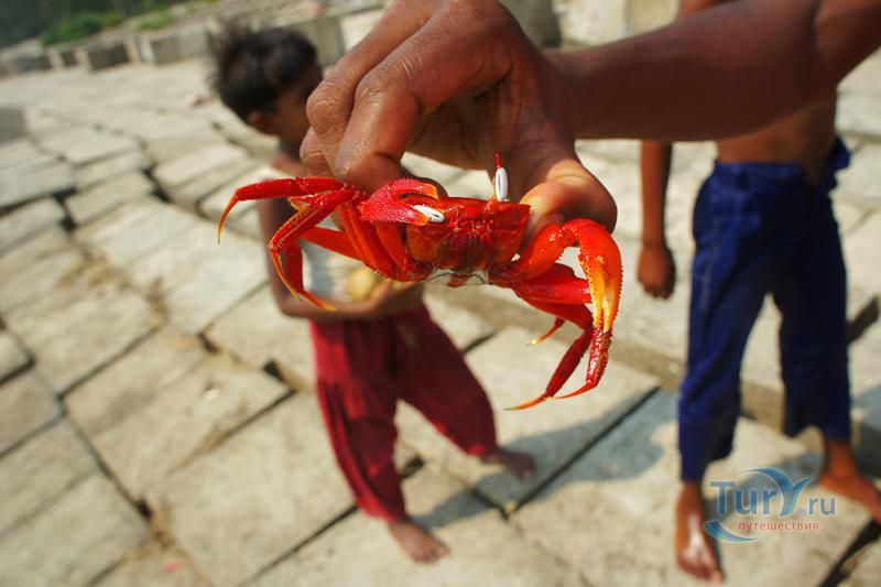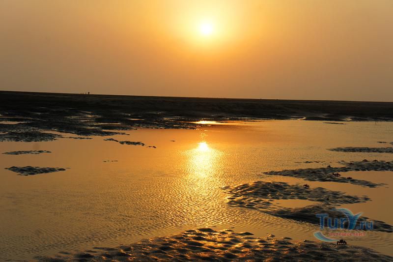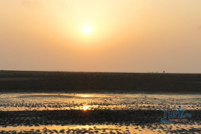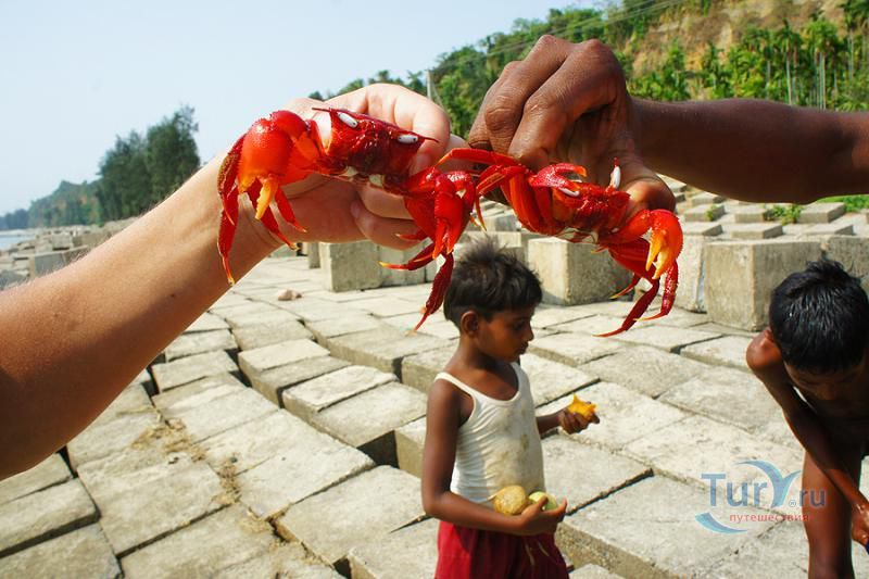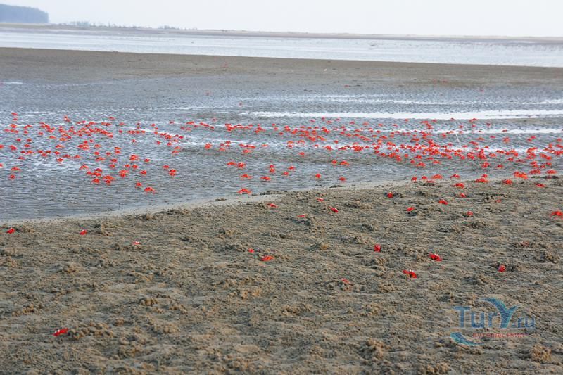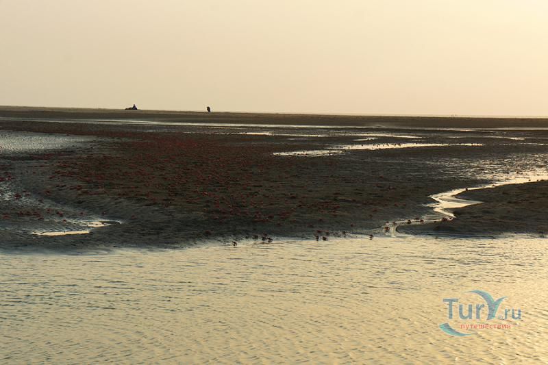 Всего пол часа езды на тук-туке от курортной части Кокс-Базара, и Вы окажетесь в неповторимом природном уголке, где на закате солнца миллионы красных крабов выползают на отливную отмель, отчего песок до горизонта кажется кроваво-красным в лучах золотого солнца. Плотный песок пологого пляжа не впитывает отступающую воду и огромная обнажившаяся поверхность земли превращается в зеркальную гладь, безупречно отражающую великолепие заката. Местные мальчишки с удовольствием поймают Вам парочку пучеглазых и быстроногих крабиков, а если пожелаете - можете и сами за ними поохотится.