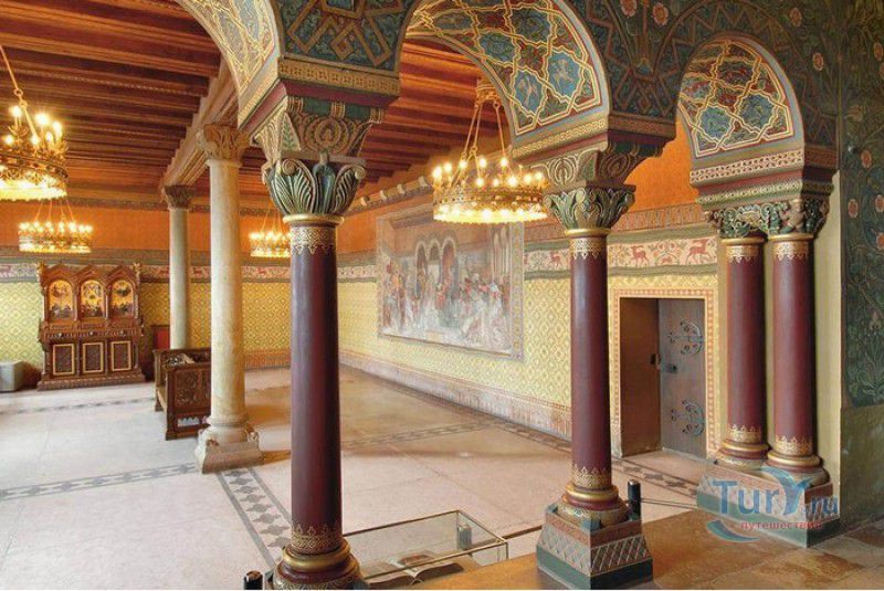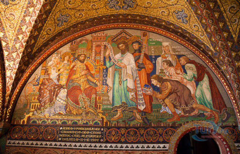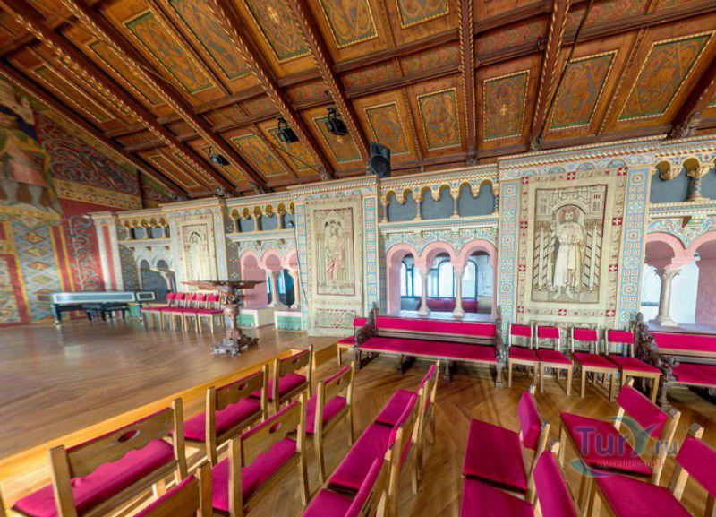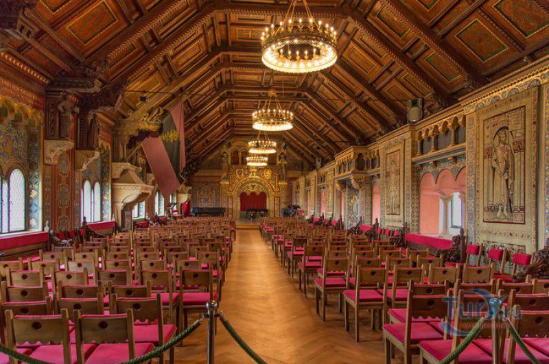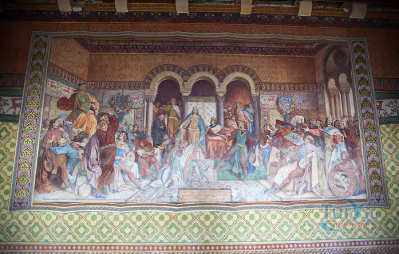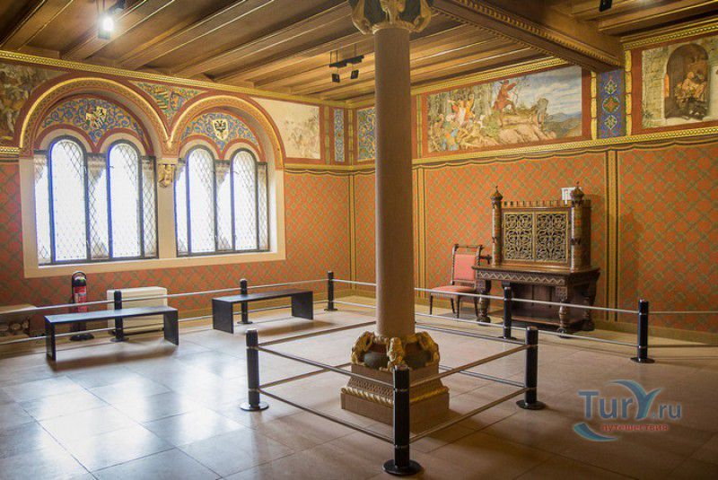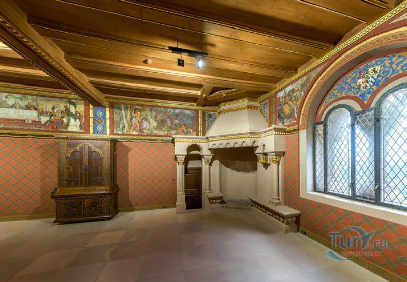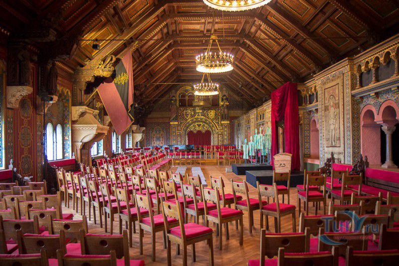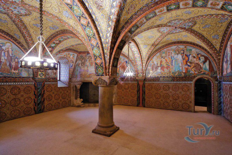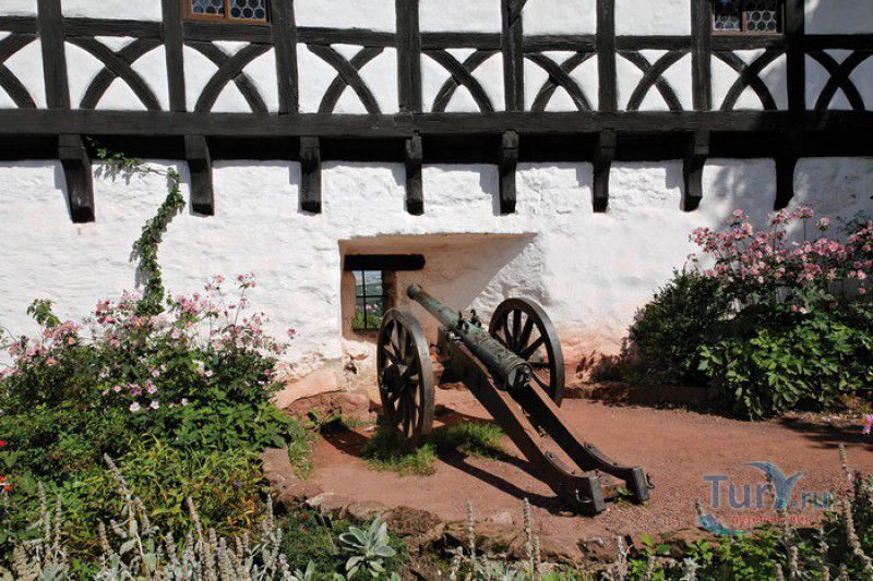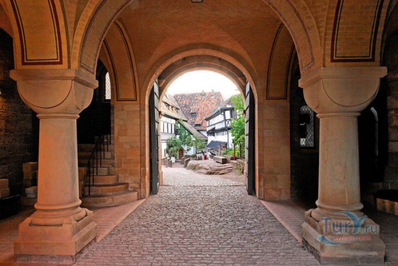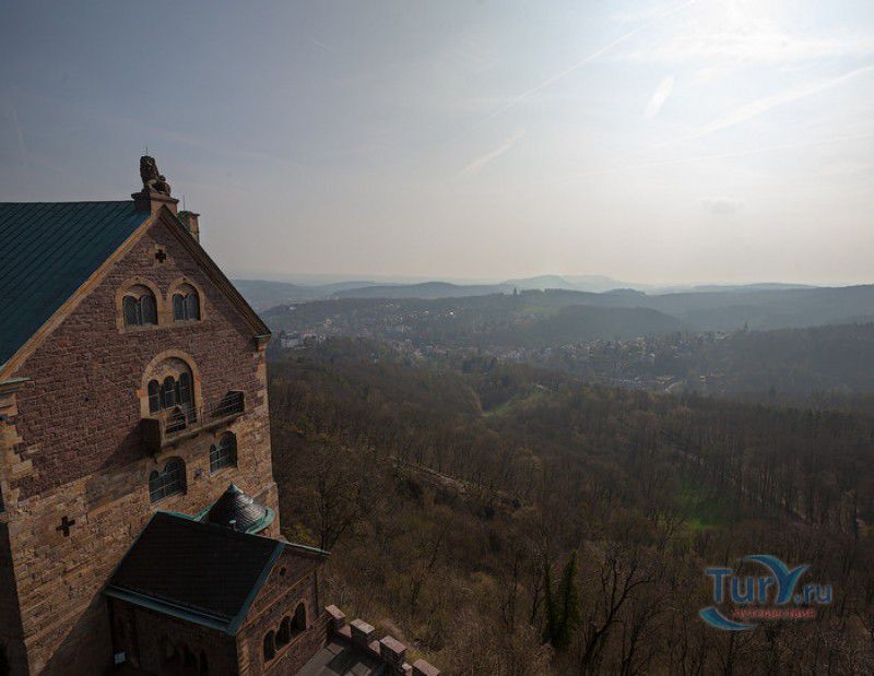 Замок Вартбург - один из самых известных средневековых замков Германии. Он расположен на северо-востоке Германии, в Тюрингии, недалеко от города Айзенах. Вартбург называют "самым немецким и самым мистическим из всех немецких замков" - именно в его стенах впервые была озвучена идея объединения разрозненных германских земель, а вся история замка неразрывно связана с историей Германского государства. В эпоху Средневековья миннезингеры (поэты-музыканты из рыцарского сословия) устраивали в замке поэтические соревнования, наиболее известное из которых - "Вартбургская война", состоялось в 1206 году. По легенде, в состязании приняли участие шестеро "певцов любви" - проигравшего ожидала смерть. Говорят, что от гибели проигравшего менестреля с помощью колдовства спасла жена владельца замка - Софья фон Виттельсбах. Сам великий Рихард Вагнер спустя столетия сделал эту историю сюжетом своей оперы "Тангейзер". В XIII веке в Вартбурге жила Елизавета Венгерская - супруга ландграфа Тюрингии Людвига IV, прославившаяся своей благотворительностью и милосердием. Святую Елизавету Венгерскую особенно чтят в Германии, она считается покровительницей Тюрингии и Гессена. В 1521-1522 годах в Вартбурге скрывался объявленный церковью еретиком и приговорённый к смертной казни Мартин Лютер. Основоположник Реформации, пребывая в глубокой депрессии, утверждал, что в замке его неоднократно посещал дьявол, и, чтобы уберечься от его козней, Лютер занялся переводом на немецкий язык Нового Завета. В 1777 году в замке в течение пяти недель жил великий немецкий поэт Иоганн Гёте. В 1817 году здесь состоялся первый съезд немецких студенческих обществ. Чёрный, красный и жёлтый цвета мундиров студентов впоследствии стали символом свободной и объединённой Германии, а также цветами её государственного флага. В 1938 году в замке, в атмосфере абсолютной секретности, Гитлер встречался с астрологами и ясновидцами, пытавшимися предсказать судьбу Третьего рейха. Известно, что составленный астрологический прогноз не понравился фюреру - все прорицатели, принимавшие участие в составлении предсказания, исчезли из замка бесследно. Возникновение и название самого замка также связаны с легендой - в 1067 году Людвиг Прыгун, представитель знатного дворянского рода Людовингов, охотился в лесах Тюрингии. Увидев высокую скалу, стоявшую посреди лесной чащи, граф воскликнул: "Подожди, гора! Ты должна нести мой замок!", что на немецком языке звучит как "Wart, der Berg!". В результате на вершине скалы, на высоте 411 метров над уровнем моря, был построен родовой замок Людовингов (в то время - деревянный), получивший название Вартбург. Первое письменное упоминание о нём датируется 1080 годом - в одной из летописей говорится о нападении воинов Людвига Прыгуна на отряд короля Генриха IV, следовавшего мимо замка. В 1155-1162 годах ландграфом Людвигом II на месте деревянного был построен каменный замок, один из первых каменных замков в Германии. Именно этот дворец, по тем временам роскошный и величественный (замок был даже больше императорского дворца в Госларе), сохранился до наших дней. От построек XII столетия остались также восточная часть крепостной стены, ворота и дальняя башня. В 1318 году замок сильно пострадал от пожара, возникшего от удара молнии. Спустя год началось его восстановление - в замке появились большое отапли