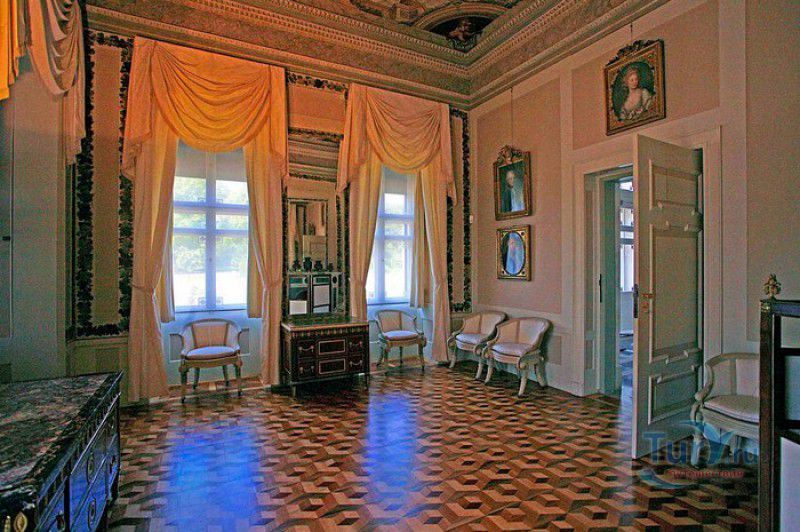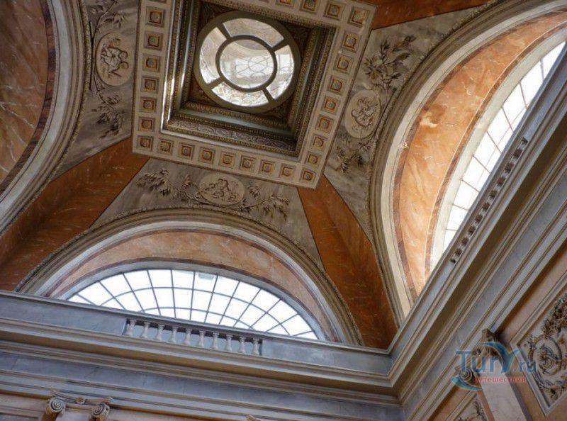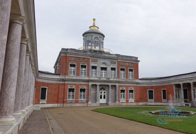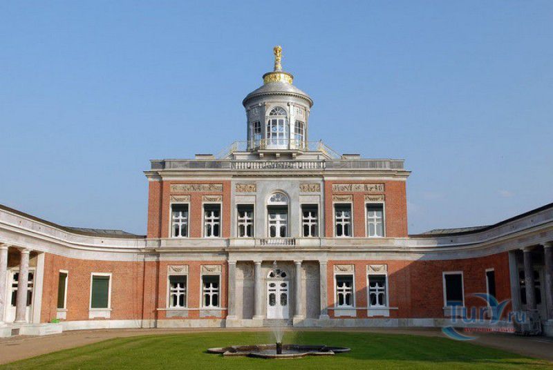 Мраморный Дворец расположен в Потсдаме, в Новом саду, на берегу Святого озера. Дворец был построен в 1787-1793 годах королём Пруссии Фридрихом Вильгельмом II, сменившим на престоле своего дядю - Фридриха II Великого. Фридрих Великий, не имевший детей, проявлял большую заботу о воспитании своего племянника и наследника трона - уже в трёхлетнем возрасте Фридриха Вильгельма забрали в Берлинский дворец, а его воспитание было поручено швейцарскому учёному Николасу де Бегелину. Наследный принц с детства не любил бывать в Сан-Суси, любимой резиденции Фридриха II Великого, где в тишине и уединении король "корпел" над бумагами, занимаясь государственными делами. Фридрих Вильгельм, в отличие от своего дяди-короля, любил развлечения, весёлые пирушки и женщин. Когда Фридрих II умер в 1786 году, Фридрих Вильгельм II не пожелал жить в Сан-Суси. Местом для своей новой летней резиденции он избрал Новый сад, где в 1787 году началось строительство дворца в классическом стиле по проекту архитектора Карла фон Гонтарда. Дворец представляет собой двухэтажное квадратное здание, построенное из красного кирпича. Фасады здания богато украшены силезским серым и белым мрамором - отсюда и название Мраморный дворец. На плоской крыше дворца возвышается ротонда, увенчанная куполом, с неё открывается великолепный вид на Святое озеро и остров Пфауэнинзель (Павлиний остров), на котором в 1794 году Фридрихом Вильгельмом II для встреч со своей фавориткой Вильгельминой Энке, впоследствии графиней Лихтенау, был построен небольшой замок. С террасы дворца, расположенной со стороны озера, к самой воде можно было спуститься по двум боковым лестницам. Здесь располагался лодочный причал, и Фридрих Вильгельм II, большой любитель лодочных прогулок, часто катался по озеру в лодке. К 1790 году внешние работы были практически завершены, и оформление интерьеров дворца было поручено архитектору Карлу Готтгарду Ланггансу. Вестибюль и парадная дворцовая лестница, ведущая на второй этаж, богато отделаны мрамором, украшены скульптурами и барельефами. Рядом с вестибюлем, в восточной части дворца, расположен Гротовый зал, используемый в летнее время в качестве столовой. Его соединял подземный ход с дворцовой кухней, расположенной на берегу озера (здание кухни в виде развалин античного храма также спроектировал Карл Готтгард Лангганс). На первом этаже также располагались личные покои короля, на втором этаже - Восточный кабинет и большой Концертный зал. Для декора внутренних помещений Лангганс использовал мраморные камины, специально изготовленные для Мраморного дворца в Италии, шёлковые обои, драгоценный паркет, разноцветный мрамор, антикварную мебель, античные статуи, картины, керамические вазы, сделанные на английской фабрике Веджвуд, и, даже, старинные часы из дома мадам Помпадур. Всего через несколько лет после завершения строительства Мраморного дворца Фридрих Вильгельм II решил его значительно расширить. В 1797 году по проекту Михаэля Филиппа Боумана слева и справа от главного здания, со стороны сада, было начато строительство боковых флигелей - одноэтажных зданий с галереями, мраморные колонны для которых были взяты из колоннады в парке Сан-Суси. В этом же году скончался Фридрих Вильгельм II, и строительные работы приостанавлены. Завершено строительство дворца было только в 1840-х годах пр