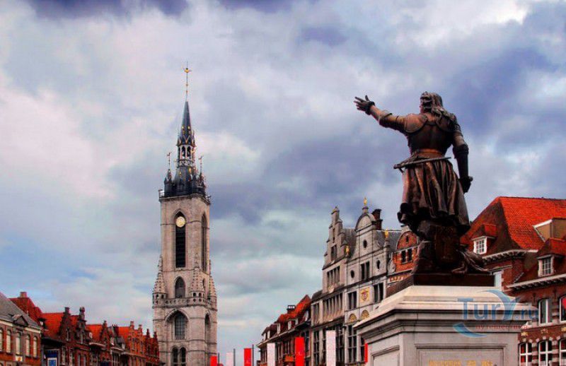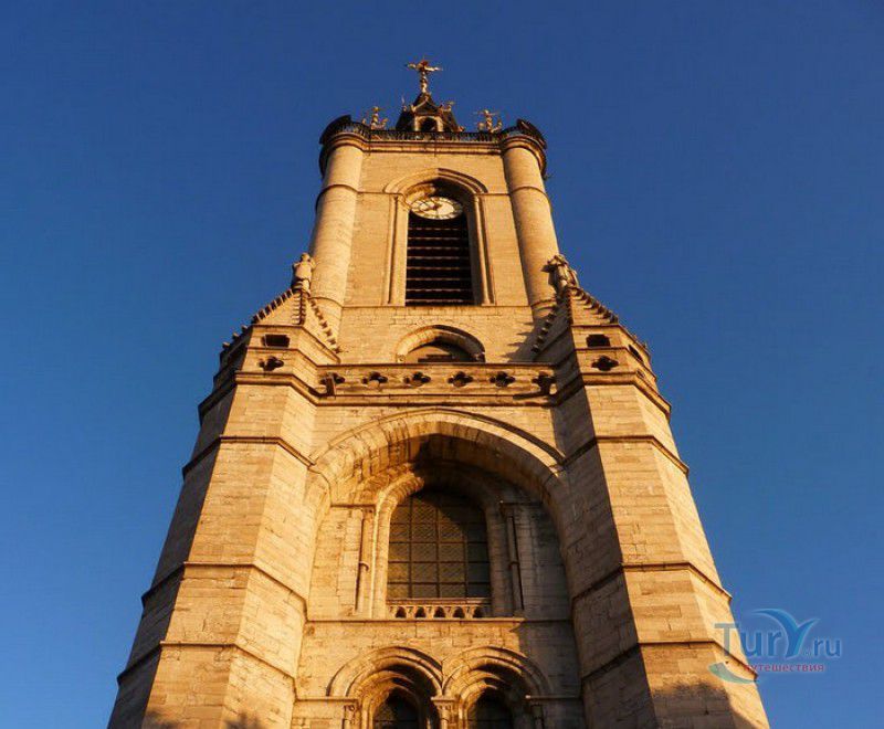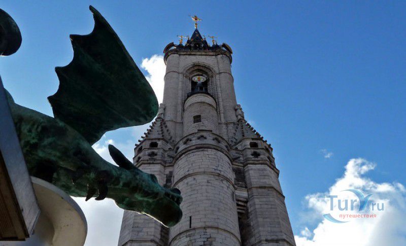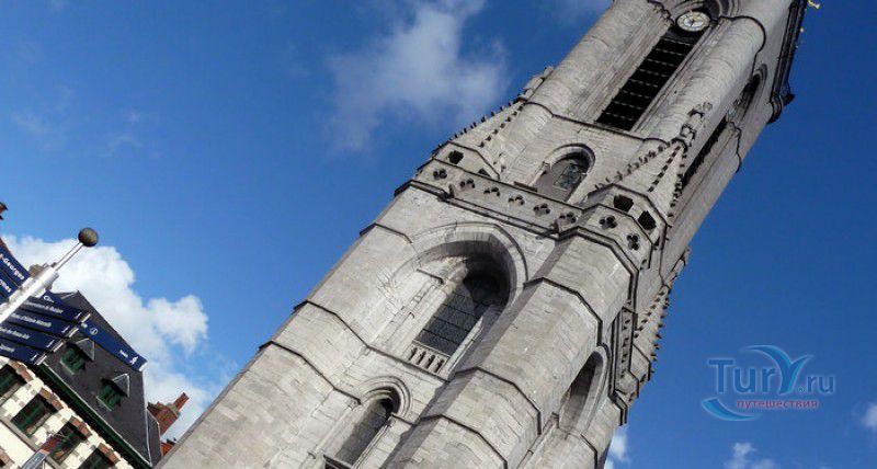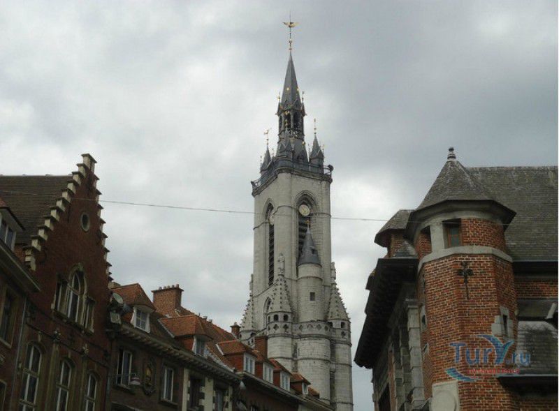 Колокольня Турне, старейшая колокольня в Бельгии, расположена в самом центре города Турне, на площади Grand Place, рядом с Кафедральным собором Богоматери. Строительство башни было начато в 1188 году, после того, как король Франции Филипп II дал разрешение Городскому совету Турне на постройку сторожевой башни с колоколом, звон которого должен был оповещать жителей о приближении к стенам города неприятеля и сигнализировать о пожарах. Первоначально колокольня Турне представляла собой квадратную в плане башню, верхняя площадка которой была огорожена зубчатыми стенами, а высота не превышала 30 метров. После строительства готического хора собора Нотр-Дам-де-Турне, который перекрыл часовым обзор в северном направлении, и возведения новых крепостных стен, высоты башни оказалось недостаточно для наблюдения за подступами к городу. В связи с этим в 1294 году было принято решение о перестройке колокольни - высота башни составила 70 метров, также была увеличена толщина её стен, по углам возведены восьмиугольные башенки и по всей длине колокольни пробиты оконные отверстия. Сверху звонница была увенчана шпилем с колокольней, на башенках были установлены четыре каменные статуи, а на шпиль водружена фигурка крылатого дракона. В 1391 году в башне вспыхнул пожар, уничтоживший верхнюю часть колокольни. Восстановительные работы были проведены в 1392-1400 годах, во время которых были отлиты новые колокола и установлены новые статуи на шпиле колокольни - позолоченные фигуры сирен, тритонов и дракона. Из отлитых Робином де Круазием в 1393 году колоколов до наших дней сохранились лишь самый большой, пятитонный колокол Bancloque, призывавший горожан на центральную площадь для оглашения им важных новостей, законов и судебных решений, и колокол Тембр (Timbre), набат которого оповещал о пожаре. В 1535 году в колокольне Турне был установлен карильон, полная реставрация которого была проведена в 2004 году. Подняться на вершину колокольни можно по винтовой лестнице, состоящей из 257 ступеней. Во время экскурсии можно увидеть старые тюремные камеры - вплоть до 1827 года в башне размещалась городская тюрьма. С вершины колокольни открывается великолепный панорамный вид на город и его окрестности. Колокольня Турне, в составе других средневековых звонниц (беффруа) Бельгии и Франции, в 1999 году внесена в список Всемирного наследия ЮНЕСКО.