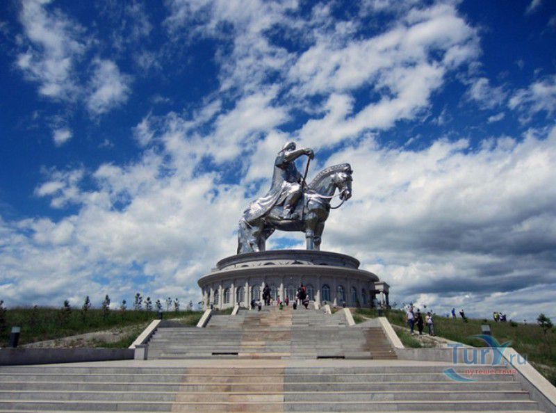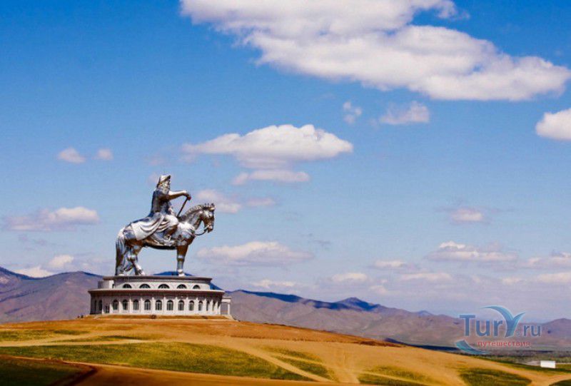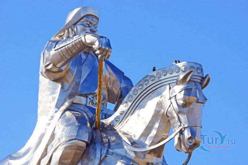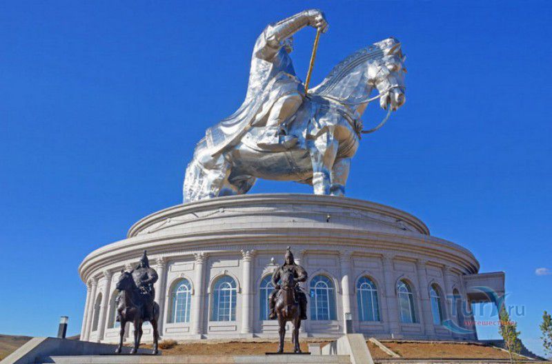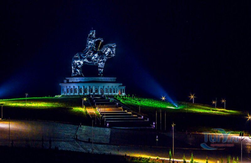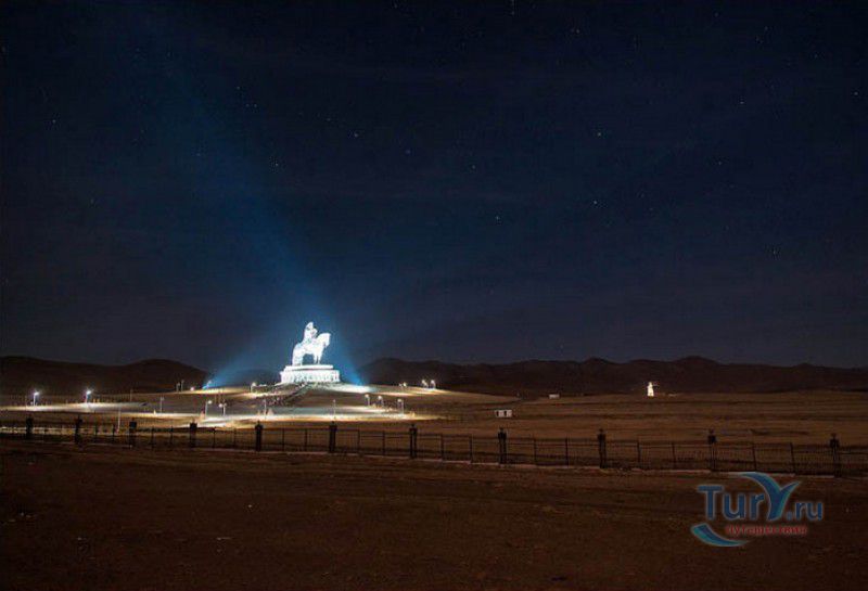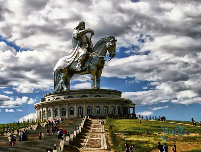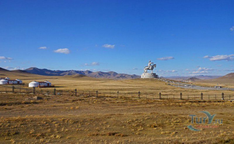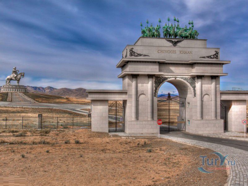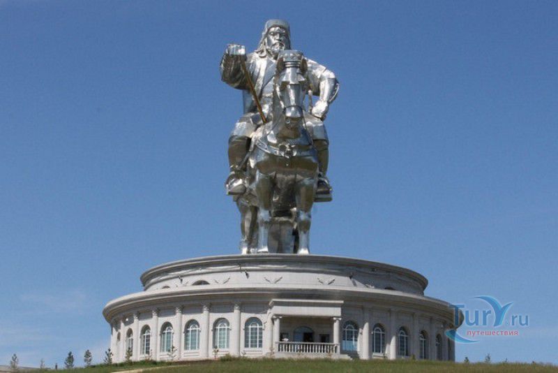 Туристический Комплекс Статуя Чингисхана - гигантский памятник создателю Монгольской империи и самая большая в мире конная статуя, расположен в 54 километрах к юго-востоку от Улан-Батора, в местности Цонжин-Болдог, на берегу реки Туул. Место для строительства монумента Чингисхану было выбрано не случайно - именно здесь, по преданию, в 1177 году юный Темуужин (будущий Чингисхан) нашёл на вершине холма золотой кнут (ташуур) - символ власти и удачи, даровавший хану могущество и непобедимость в бою. Монумент Чингисхану выполнен по проекту скульптора Эрдембилэга и архитектора Энхжаргала, на изготовление конной статуи ушло 250 тонн нержавеющей стали, а стоимость проекта составила более четырёх миллионов американских долларов. Торжественное открытие памятника состоялось в сентябре 2008 года, на церемонии присутствовал президент Монголии. Высота статуи - 40 метров, она установлена на постаменте высотой 10 метров и диаметром 30 метров. Сам постамент представляет из себя двухэтажное здание, окруженное 36 колоннами - по количеству великих ханов, правивших страной после Чингисхана. На тридцатиметровой высоте, в голове лошади, оборудована смотровая площадка, на которую можно подняться на лифте или по лестнице. С площадки открывается панорамный вид на бескрайние степи Монголии. Внутри постамента расположены рестораны, бильярдный зал, сувенирные магазины, художественная галерея, в которой выставлены картины монгольских живописцев, конференц-зал, музей Бронзового века империи гуннов и музей Великого Монгольского государства. Здесь также можно увидеть большую карту, на которой отмечены территории, завоеванные Чингисханом, двухметровый золотой кнут и огромный сапог монгольского воина. Вокруг статуи Чингисхана, на площади 212 гектаров, строится тематический парк Золотой кнут, в нём запланированы 6 тематических зон - лагерь воинов, лагерь ремесленников, стойбище шаманов, юрта хана, стойбище скотоводов и образовательный лагерь. Уже построены центральные ворота, территорию планируют обнести каменной стеной, в парке будут высажены 10000 деревьев, оборудованы кемпинг на 200 юрт, поле для гольфа, театр на открытом воздухе и бассейн.