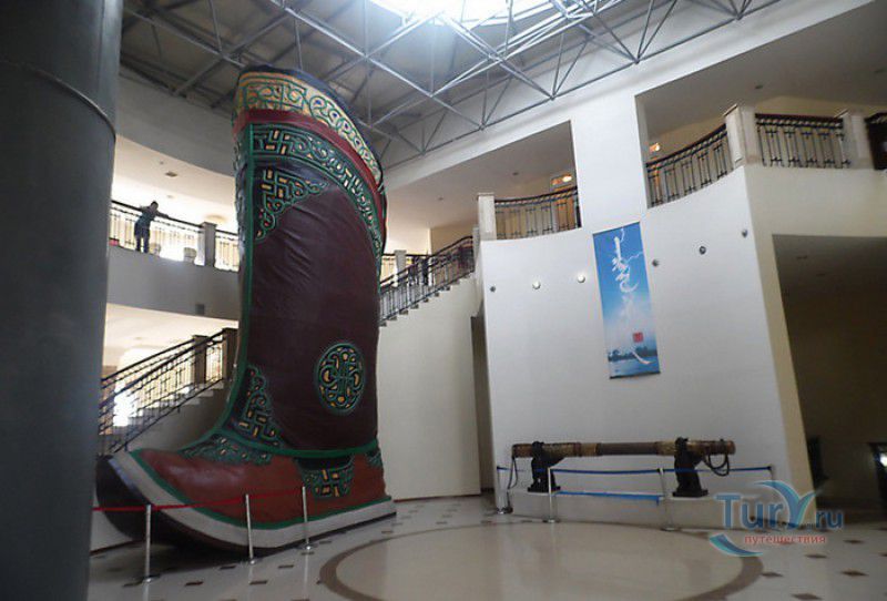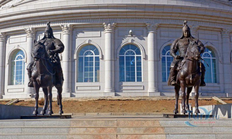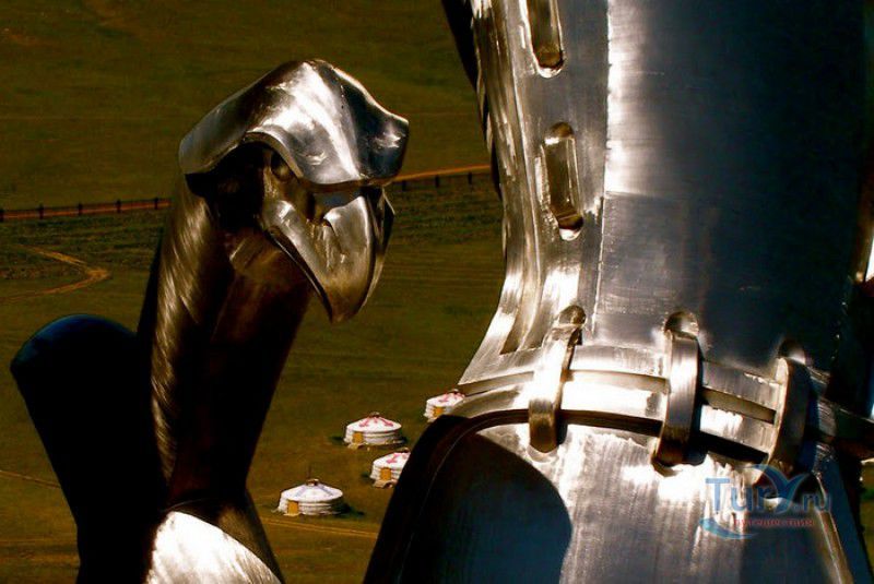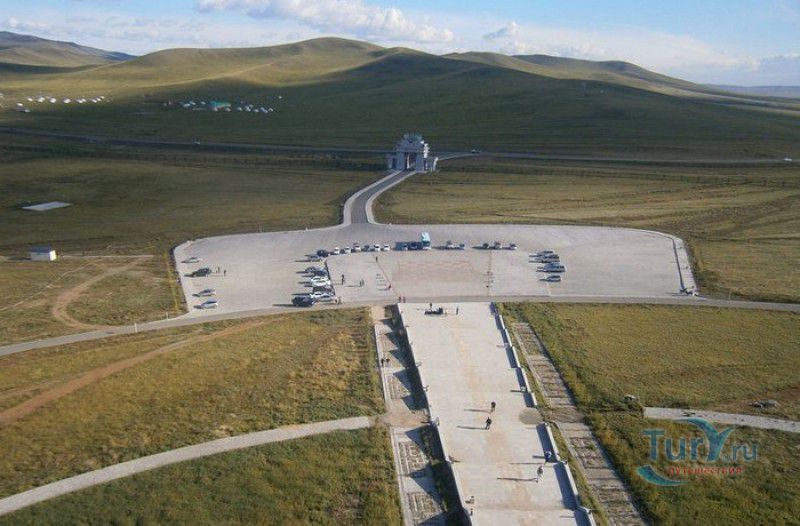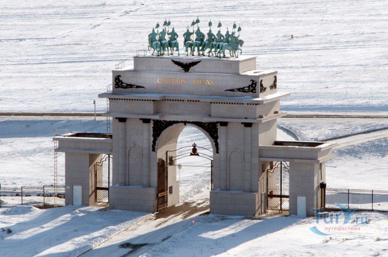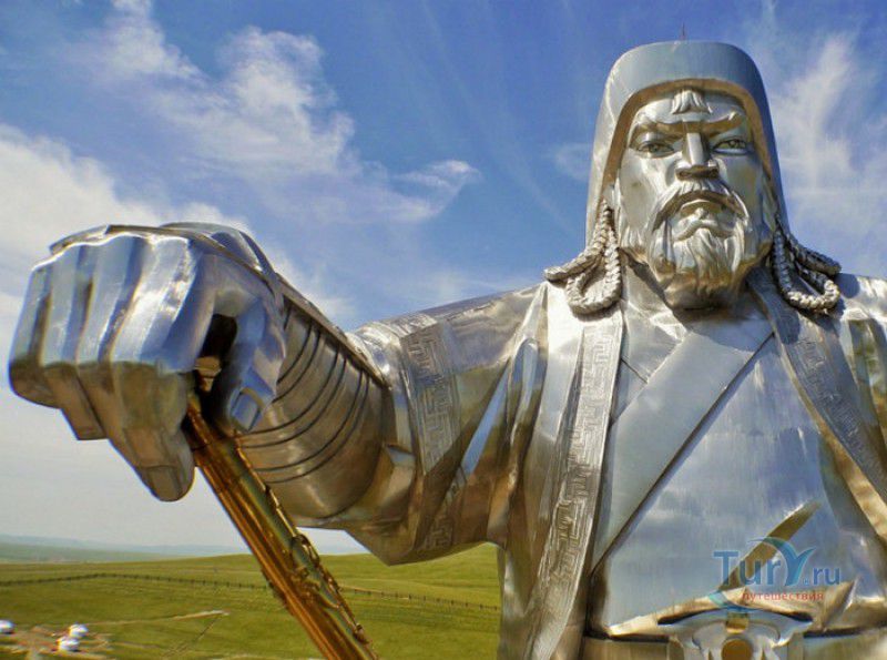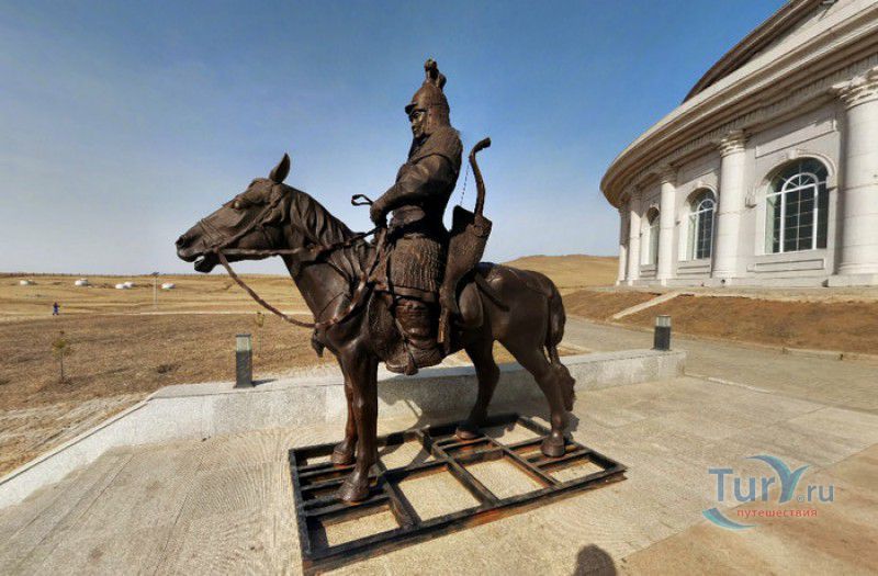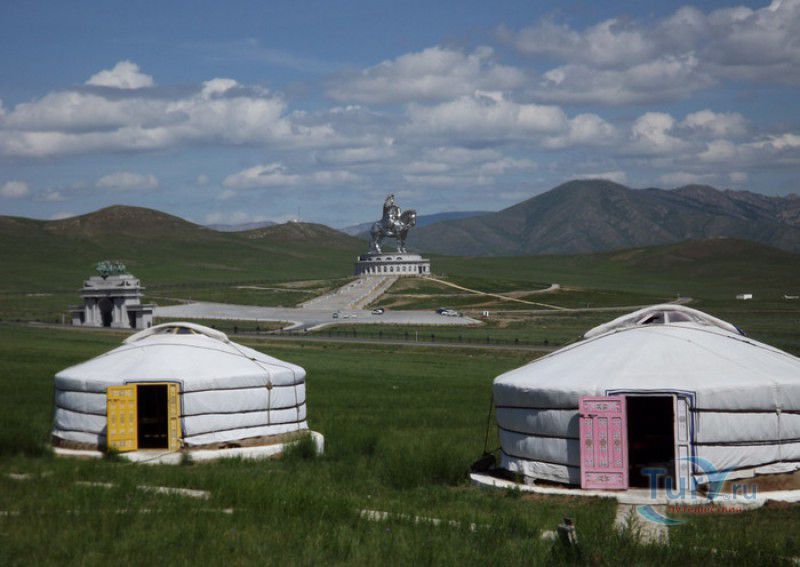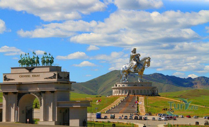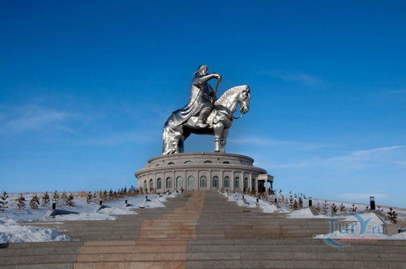 Туристический Комплекс Статуя Чингисхана - гигантский памятник создателю Монгольской империи и самая большая в мире конная статуя, расположен в 54 километрах к юго-востоку от Улан-Батора, в местности Цонжин-Болдог, на берегу реки Туул. Место для строительства монумента Чингисхану было выбрано не случайно - именно здесь, по преданию, в 1177 году юный Темуужин (будущий Чингисхан) нашёл на вершине холма золотой кнут (ташуур) - символ власти и удачи, даровавший хану могущество и непобедимость в бою. Монумент Чингисхану выполнен по проекту скульптора Эрдембилэга и архитектора Энхжаргала, на изготовление конной статуи ушло 250 тонн нержавеющей стали, а стоимость проекта составила более четырёх миллионов американских долларов. Торжественное открытие памятника состоялось в сентябре 2008 года, на церемонии присутствовал президент Монголии. Высота статуи - 40 метров, она установлена на постаменте высотой 10 метров и диаметром 30 метров. Сам постамент представляет из себя двухэтажное здание, окруженное 36 колоннами - по количеству великих ханов, правивших страной после Чингисхана. На тридцатиметровой высоте, в голове лошади, оборудована смотровая площадка, на которую можно подняться на лифте или по лестнице. С площадки открывается панорамный вид на бескрайние степи Монголии. Внутри постамента расположены рестораны, бильярдный зал, сувенирные магазины, художественная галерея, в которой выставлены картины монгольских живописцев, конференц-зал, музей Бронзового века империи гуннов и музей Великого Монгольского государства. Здесь также можно увидеть большую карту, на которой отмечены территории, завоеванные Чингисханом, двухметровый золотой кнут и огромный сапог монгольского воина. Вокруг статуи Чингисхана, на площади 212 гектаров, строится тематический парк Золотой кнут, в нём запланированы 6 тематических зон - лагерь воинов, лагерь ремесленников, стойбище шаманов, юрта хана, стойбище скотоводов и образовательный лагерь. Уже построены центральные ворота, территорию планируют обнести каменной стеной, в парке будут высажены 10000 деревьев, оборудованы кемпинг на 200 юрт, поле для гольфа, театр на открытом воздухе и бассейн.