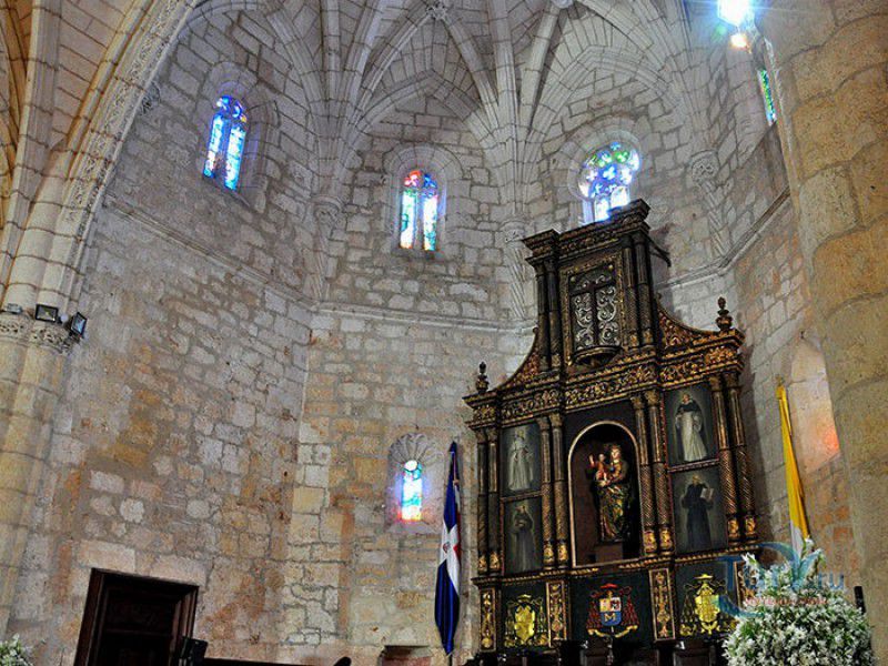 Кафедральный Собор Санто-Доминго имеет несколько названий - Собор Санта-Мария-ла-Менор, Базилика Богоматери Благовещения, но чаще всего его называют Собором Америки. Старейший католический храм в Америке расположен в столице Доминиканской Республики, городе Санто-Доминго, в его исторической части - Колониальной зоне, в составе которой в 1990 году внесен в список Всемирного наследия ЮНЕСКО. Строительство собора в Санто-Доминго было начато в 1512 году и завершено в 1540 году, после окончания работ колокольня собора так и осталась недостроенной. Освящение храма в честь Пресвятой Девы Марии состоялось в 1541 году, а в 1546 году папа Павел III присвоил храму статус Кафедрального собора. Автором проекта Собора Америки является севильский архитектор Алонсо Родригес, в архитектурном стиле здания зодчий гармонично объединил готику, барокко и платереско (архитектурный стиль, называемый испанским Возрождением). В качестве строительного материала был использован золотистый коралловый известняк. Для здания характерны массивные толстые стены и абсолютно отличающиеся друг от друга по стилю фасады - праздничный центральный фасад с порталом, богато украшенным ажурной резьбой и статуями святых, и готический северный фасад, напоминающий неприступную средневековую крепость. В интерьере храма строгие готические своды соседствуют с "ювелирным" платереско, который особенно ярко выражен в отделке великолепного серебряного алтаря. Изначально собор был построен в виде трёхнефной базилики со ступицей и тремя проходами. В Соборе Америки есть сокровищница, в которой хранятся старинные иконы, запрестольные образы, полихромные деревянные статуи XVI века, ювелирные изделия, серебряные чаши и антикварная мебель. Со временем в храме появились 14 часовен - семь в южном проходе и семь - в северном, в них расположены могилы нескольких епископов и вице-королей Новой Испании. С 1540 года по 1877 год в Кафедральном соборе Санто-Доминго, рядом с главным алтарём, был погребён прах Христофора Колумба. Христофор Колумб умер в 1506 году и был похоронен в Севилье, но позже испанский король Карл V решил исполнить предсмертное желание великого мореплавателя и перенести его прах в Вест-Индию. В 1540 году останки Колумба были перевезены на остров Эспаньола (ныне Гаити) и похоронены в Соборе Санто-Доминго. На рубеже XVIII и XIX веков часть Эспаньолы перешла к французам, и прах Колумба был перевезен на Кубу, где и был погребён в Кафедральном соборе Гаваны. В 1898 году останки первооткрывателя Америки снова вернули в Санто-Доминго, а затем - в Севилью. В конце XIX века, во время реставрации Собора Америки, был обнаружен свинцовый гроб, на котором было написано: ""Муж достославный и выдающийся, дон Кристобаль Колон". В гробу оказались кости, по-видимому, Христофора Колумба. Останки похоронили в соборе Санто-Доминго, после чего между Севильей и Санто-Доминго возник спор за право считаться местом, где покоится великий мореплаватель. В 2002-2006 годах прах из севильской могилы изучала группа генетиков и антропологов во главе с профессором судебной медицины Гранадского университета Хосе Антонио Лоренте. Согласно опубликованным данным генетической экспертизы, ДНК останков из могилы в Кафедральном соборе Севильи имеют "абсолютное сходство" с ДНК праха Диего Колумба, родного брата Христофора Колумба, похор