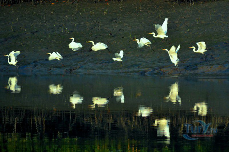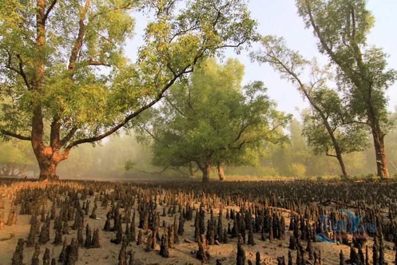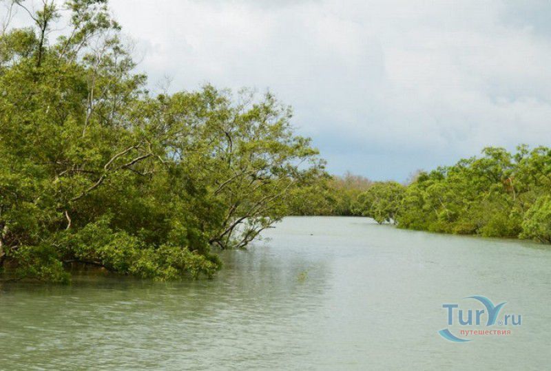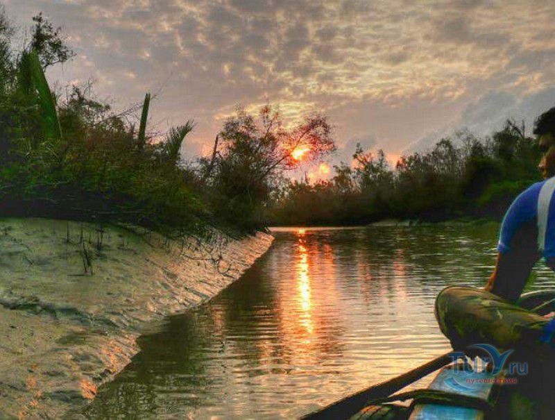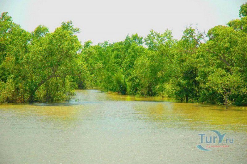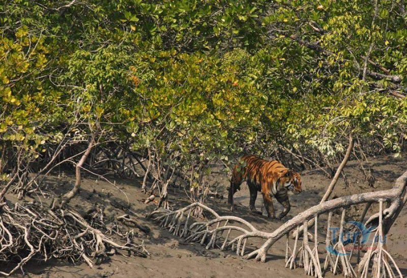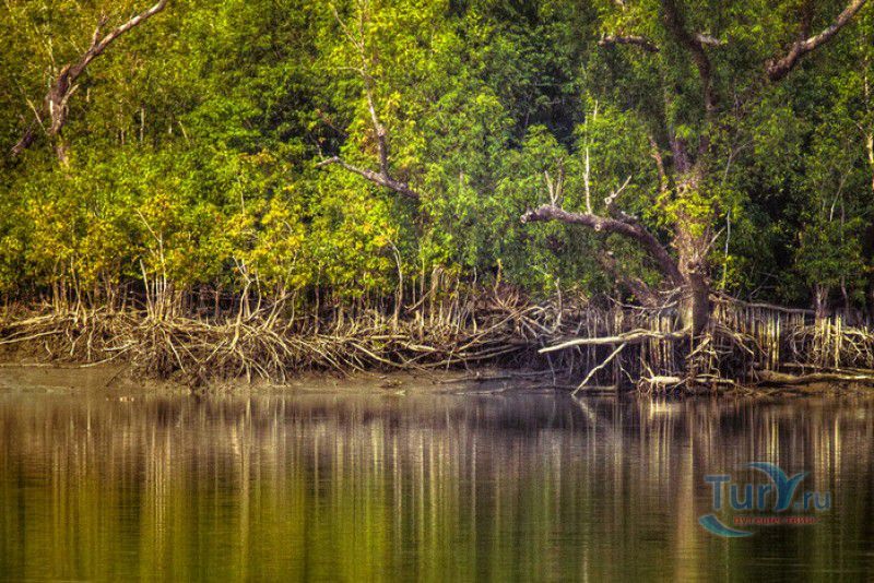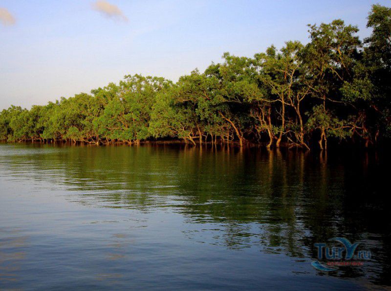Национальный Парк Сундарбан расположен в Индии, в штате Западная Бенгалия, в округе Южные 24 Парганы, в 120 километрах к юго-востоку от города Калькутта. Парк находится в индийской части самого большого в мире мангрового леса Сундарбан, расположенного на территории крупнейшей в мире дельты, образованной реками Ганг, Брахмапутра и Мегхна. В 1973 году, с целью сохранения уникальной экосистемы мангровых лесов - среды обитания бенгальских тигров и других редких животных и птиц, здесь был создан Тигриный заповедник, площадь которого составила 2585 квадратных километров. В 1984 году заповедник получил статус Национального парка, а его площадь была увеличена до 4262 квадратных километров. В 1987 году Национальный парк Сундарбан был внесен в список Всемирного наследия ЮНЕСКО, в 1989 году ему был присвоен статус биосферного заповедника. Ландшафт парка формируют 56 небольших островов, разделённых руслами семи главных рек, их притоками, сетью проток и каналов, густые мангровые заросли, водно-болотные угодья и ватты - так называемые "грязевые берега". Из 55 известных на Земле видов мангровых деревьев 29 растут в Национальном парке Сундарбан. Основу всей мангровой растительности Сундарбана составляет дерево сундари, в честь которого Национальный парк и был назван. Всего в парке произрастают 64 вида растений, в том числе агаллоховое дерево (ядовитое мангровое дерево), бругиера голокорневая, эгицерас рожковидный, ксилокарпус, ризофора, красное мангровое дерево, пальма нипа, папоротники. Мангровые заросли и леса Сундарбана служат естественной средой обитания королевского бенгальского тигра, находящегося под угрозой полного исчезновения. В настоящее время в парке обитают 400 тигров. Местные бенгальские тигры приспособились к купанию в солёной воде, а в период с ноября по февраль их можно увидеть "загорающими" на берегу протоки или реки. Посетителям парка следует помнить, что бенгальские тигры очень агрессивны и склонны к людоедству - ежегодно жертвами тигров становятся 10-40 местных жителей, проживающих на территории парка. Чтобы отучить бенгальских тигров от людоедства, по всему парку расставлены человекоподобные чучела, "бьющиеся" током, а вокруг поселений натянуты нейлоновые сети. Туристам категорически запрещено самостоятельно передвигаться по парку и углубляться в мангровые заросли. Всего в парке обитают 58 видов млекопитающих (кошка-рыболов, бенгальская кошка, камышовый кот, аксис, болотный олень, индийский серый мангуст, панголин, летучая лисица), 250 видов птиц (индийский аист-разиня, ибисы, кулики, цапли, чайки, фазаны, болотные куропатки, мухоловки, орлан-рыболов, белобрюхий орлан, скопа), 55 видов пресмыкающихся (гребнистые крокодилы, вараны, питоны, королевская кобра, крайт, гадюка Расселла). В реках, заливах и протоках водится много рыбы, креветок, морских скатов, в прибрежных водах обитают иравадийский, гангский и горбатый дельфины, индийская афалина, беспёрая морская свинья, оливковая, бисса и зелёная морские черепахи. Единственным средством передвижения по парку является лодка, катер или небольшое судно. Посетители Национального парка Сундарбан имеют возможность совершить увлекательное путешествие по протокам и каналам, петляющим через мангровые заросли, посетить крокодиловую ферму, побывать в птичьем заповеднике на острове Сэджнехали, н