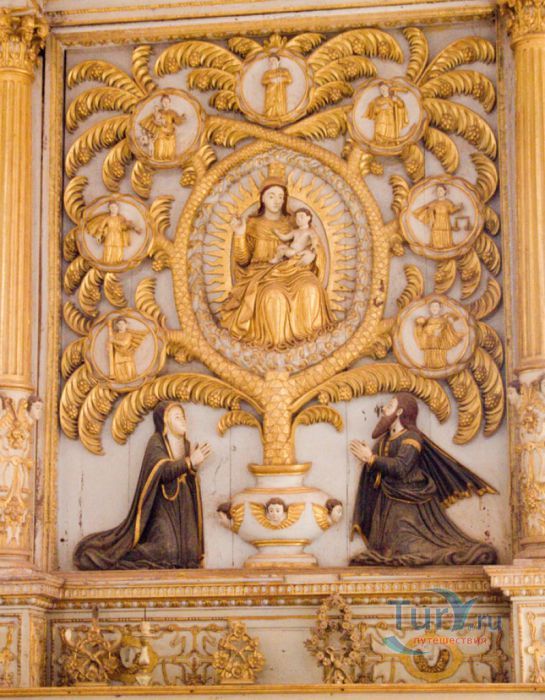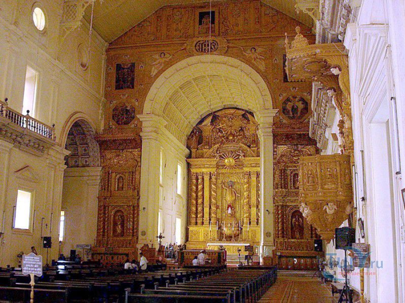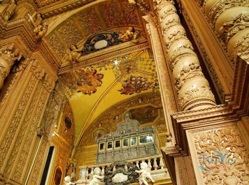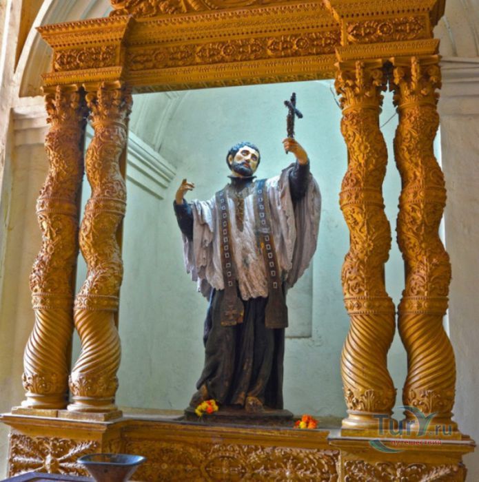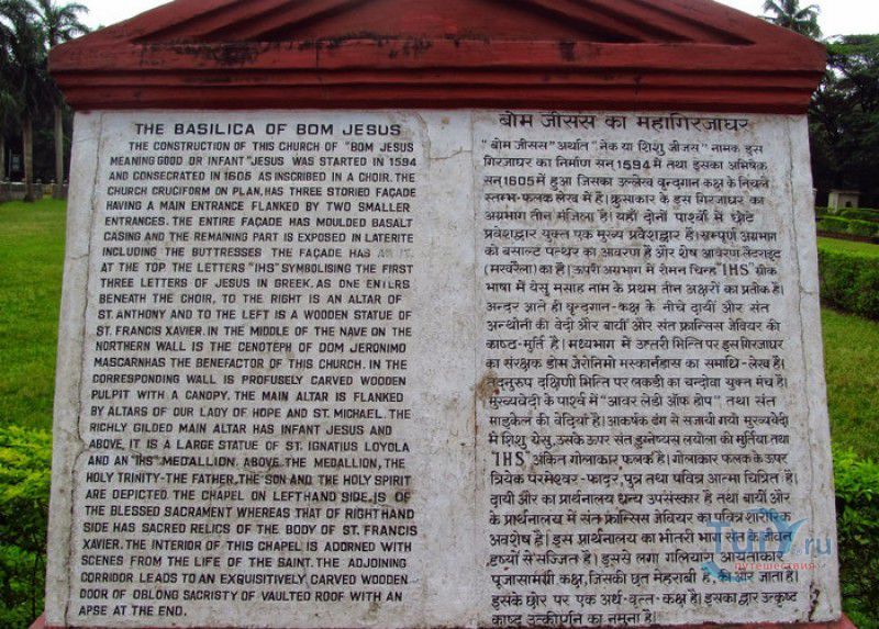 Базилика Бон-Жезуш (Базилика Милосердного Иисуса) - один из старейших католических храмов в Гоа и первая в Индии церковь, получившая статус Малой базилики. Она расположена в историческом центре Старого Гоа - бывшей столицы Португальской Индии. Церковь была возведена Орденом иезуитов в 1594-1605 годах, 15 мая 1605 года состоялось освящение храма, которое совершил Алексу де Менезеш, архиепископ и вице-король Гоа. Церковь построена в барочном стиле и считается одним из лучших примеров архитектуры барокко в Индии. Базилика Бон-Жезуш построена из тёмно-красного гранита, и это единственный храм в Старом Гоа, фасад которого не покрыт штукатуркой. В плане базилика имеет форму креста, высота храма - 18,5 метров, длина - 56 метров, ширина - 17 метров. Базилика имеет неф, трансепт, хор, две часовни, ризницу, звонницу и внутренний двор, окружённый крытой арочной галереей. К базилике примыкает молитвенный дом, построенный иезуитами в 1585-1589 годах. Главный вход церкви украшен коринфскими колоннами, фасад оформлен декоративными окнами, карнизами, лепниной и большим фронтоном, на котором размещён барельеф с гербом Общества Иисуса. Интерьер храма оформлен в мозаично-коринфском стиле. Пол церкви выполнен из мрамора и инкрустирован драгоценными камнями. Главный алтарь, расположенный в конце нефа, имеет огромный позолоченный запрестольный образ со статуями младенца Иисуса и святого Игнатия Лойолы - основателя Ордена иезуитов. С обеих сторон от главного алтаря расположены алтарь Богоматери Надежды и алтарь Святого Михаила. В церкви есть две часовни - на северной стороне трансепта находится часовня Святого Причастия, на его южной стороне расположена часовня святого Франциска Ксаверия. В ней, в серебряном реликварии, подаренном базилике в 1696 году великим герцогом Тосканы Козимо III Медичи, хранятся мощи святого Франциска Ксаверия - одного из основателей Общества Иисуса и первого миссионера в истории Ордена иезуитов. Франциск Ксаверий умер в 1552 году на китайском острове Шанчуань, где и был похоронен. 22 марта 1553 году его останки были перезахоронены в церкви Святого Павла в Малакке, а 11 декабря 1553 года доставлены в базилику Бон-Жезуш, где и находятся по сей день. Часовня Франциска Ксаверия украшена золочёными витыми колоннами, деревянной резьбой и картинами, изображающими сцены из жизни святого. Один раз в десять лет, в годовщину смерти святого, нетленные мощи Франциска Ксаверия выставляются для всеобщего обозрения и поклонения (последний раз они были выставлены в 2014 году). В эти дни базилику Бон-Жезуш посещают тысячи паломников и туристов со всего мира. В ризнице церкви, в железном сундуке, хранится Золотая Роза, подаренная базилике Бон-Жезуш папой Пием XII в 1953 году. На верхнем этаже базилики расположена художественная галерея, в которой выставлены 36 картин и 14 рисунков на библейские темы, написанные в 1973-1976 годах художником-сюрреалистом Домом Мартином. В 1986 году Базилика Бон-Жезуш в составе "церквей и монастырей Старого Гоа" была внесена в список Всемирного наследия ЮНЕСКО.