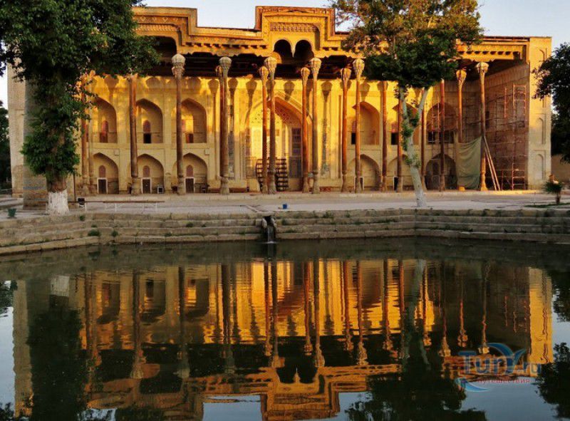 Мечеть Боло-Хауз - единственный сохранившийся до наших дней архитектурный памятник на площади Регистан в Бухаре. Мечеть расположена в историческом центре города, напротив крепости Арк. До Октябрьской революции мечеть Боло-Хауз служила главной пятничной мечетью города, часто её называли мечетью Эмира, так как в ней, вместе со своим народом, часто молился и сам эмир Бухары, а также его визири, советники и приближённые. По одной версии, мечеть была построена в 1712 году в честь матери бухарского правителя Абу-Фаюд-хана, по другой - её построил эмир Шахмурад для публичных молитв - таким образом правитель Бухары хотел продемонстрировать близость к своему народу. Мечеть Боло-Хауз представляет собой целый комплекс, состоящий из мечети, минарета и пруда (хауза), служившего резервуаром питьевой воды. Бассейн при мечети является самой старой частью архитектурного ансамбля Боло-Хауз и одним из немногих оставшихся в древнем городе искусственных водоёмов. Перед этим прудом и была построена мечеть, представляющая собой четырёхколонный зал, увенчанный большим куполом. В начале XX столетия по приказу последнего эмира Бухары Сейида Алим-хана к мечети был пристроен айван (летняя терраса) с двадцатью резными деревянными колоннами с вычурными капителями, разрисованным кесонным потолком и центральным порталом, покрытым ганчевым раствором (смесью гипса и глины), украшенным геометрическим и растительным орнаментом. Декор айвана был выполнен известным узбекским зодчим, художником-орнаменталистом и резчиком по ганчу Ширимом Мурадовым. В 1917 году им же перед мечетью был построен небольшой минарет. Рядом с мечетью располагалась резиденция эмира Бухары, из которой каждую пятницу правитель в сопровождении большой свиты отправлялся на полуденную молитву в мечеть Боло-Хауз. И сегодня по пятницам мечеть настолько заполнена правоверными, что все они не могут поместиться внутри мечети, и часть верующих располагается на площадке перед хаузом.