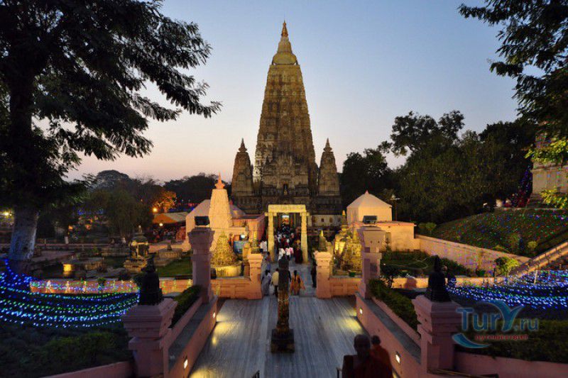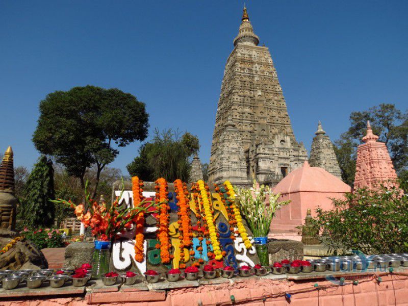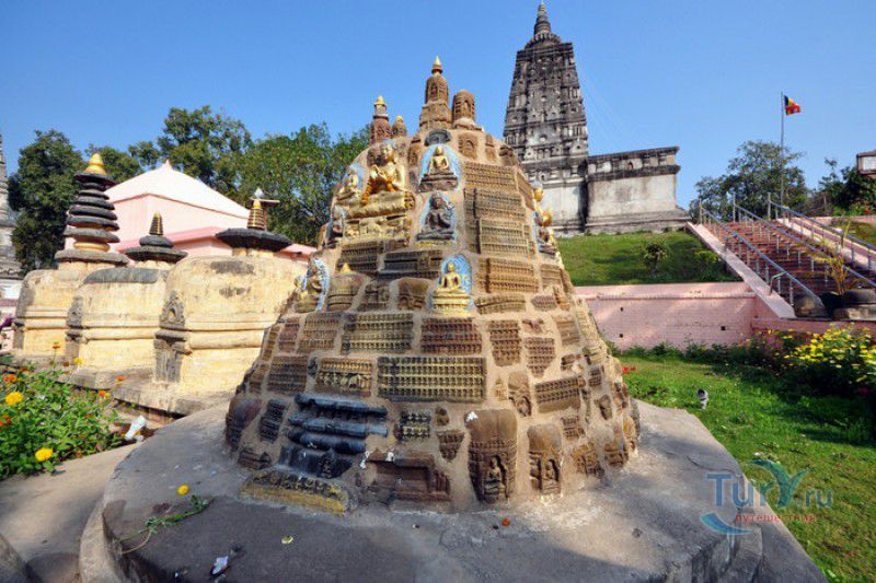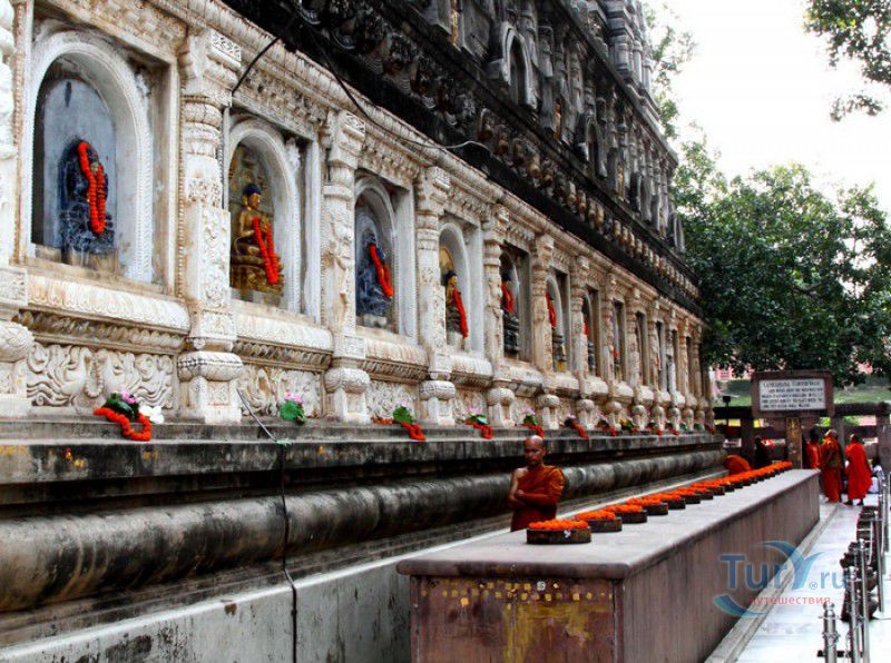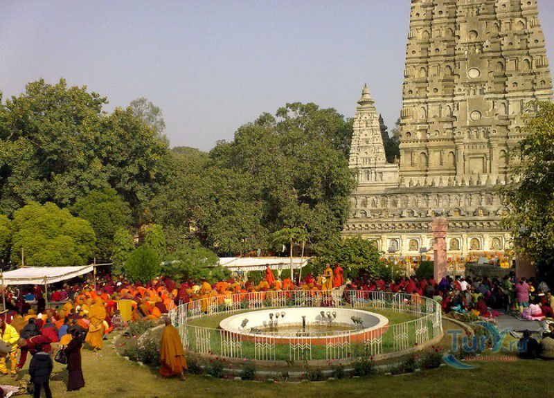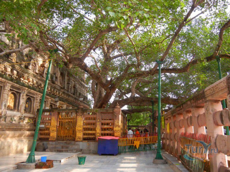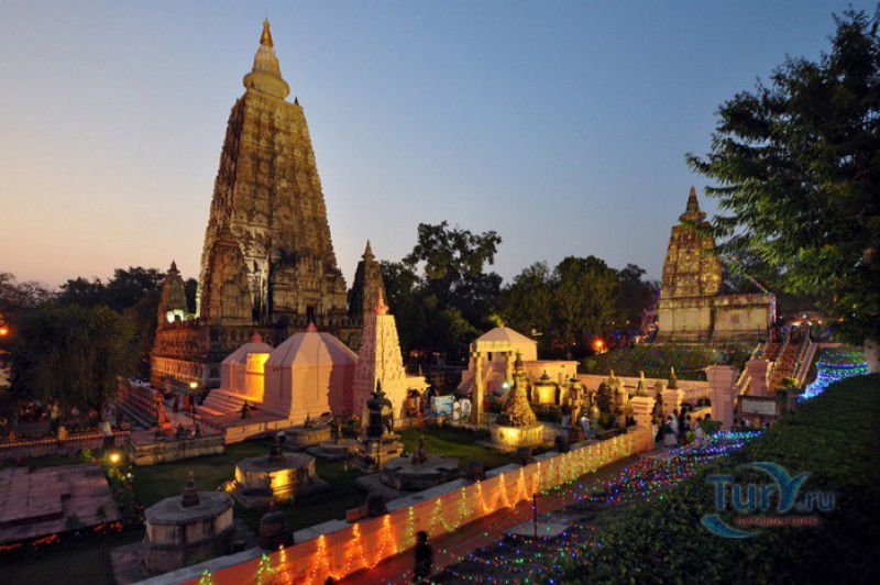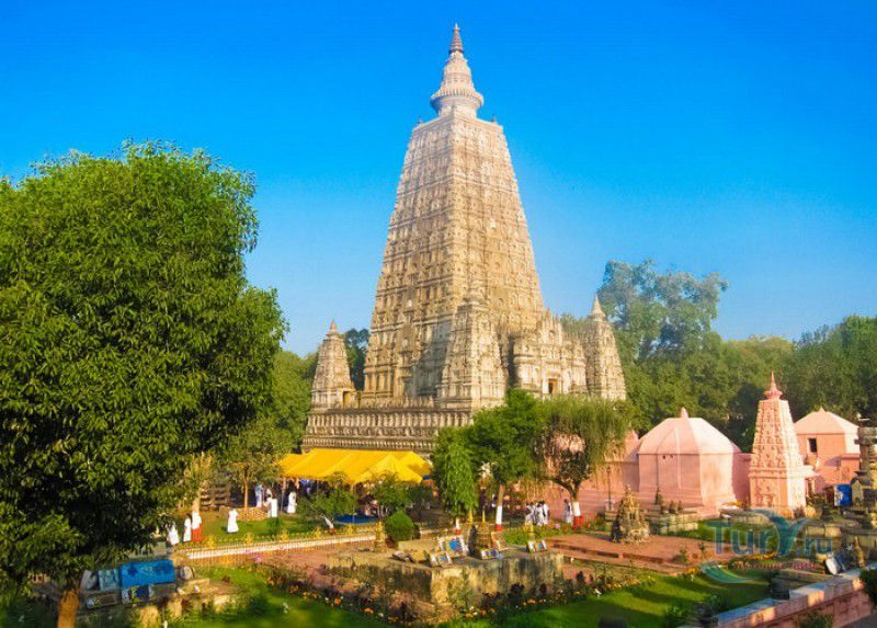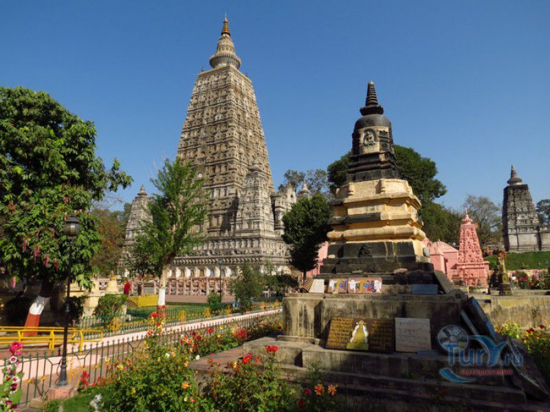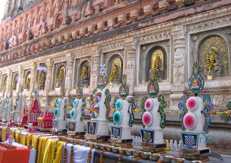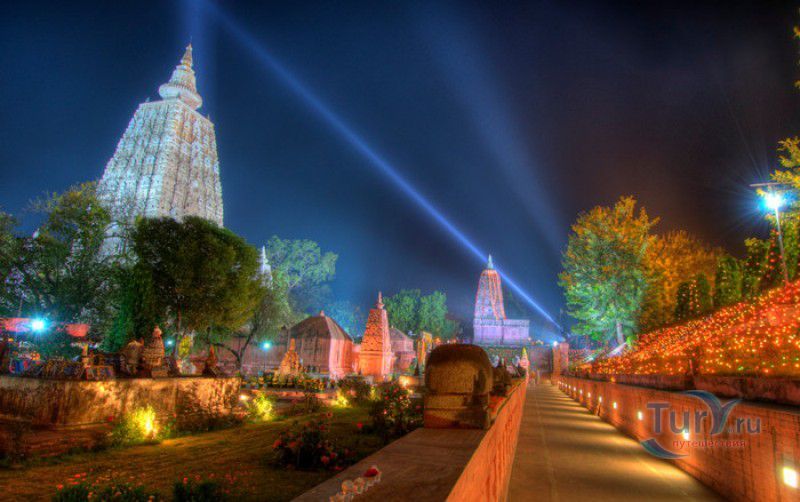Храм Махабодхи расположен в северо-восточной части Индии, в штате Бихар, в городе Бодх-Гая. Махабодхи - один из самых знаменитых и почитаемых в мире буддистских храмов, он построен на том самом месте, где, по преданию, в 589 году до нашей эры основатель буддизма Сиддхартха Гаутама, во время медитации под священным деревом Бодхи, достиг Просветления и стал Буддой. Храм был возведен в 260 году до нашей эры по приказу императора Ашоки Маурьи, решившего увековечить это священное место для потомков. Первоначально храм представлял собой небольшой открытый павильон с "Алмазным Троном" - Ваджрасаной. От первого храма до наших дней практически ничего не сохранилось, он был значительно расширен и перестроен в V-VI веках. Храм Махабодхи представляет собой величественную 55-метровую пирамидальную башню (ступу), окружённую четырьмя меньшими башнями, построенными по подобию главной башни. Храм полностью выполнен из кирпича, толщина кладки достигает пяти метров, а кирпичи настолько плотно пригнаны друг к другу, что цемент при строительстве использовался в минимальных количествах. Поверхность здания оштукатурена, на нижнем уровне есть множество ниш со статуями Будд и Бодхисаттв, верхняя часть украшена резными панелями, рельефами и декоративной лепниной. Со всех сторон здание окружено каменными перилами двухметровой высоты. Наиболее старая часть перил, датируемая 150 годом до нашей эры, выполнена из песчаника. На перилах вырезаны изображения богини изобилия, процветания и богатства Лакшми, купающейся со слонами, и бога Солнца Сурьи, едущего в колеснице, запряжённой четвёркой лошадей. Более новая часть перил выполнена из необработанного гранита в IV-VI веках, во время эпохи Гуптов, перила украшены резными изображениями цветков лотоса и Гаруды - ездовой птицы бога Вишну. Внутри ступы есть два помещения. В первом из них находятся гранитные плиты, на которых выбиты имена и портреты членов королевских семейств Непала и Мьянмы (Бирмы), покровительствующих храму Махабодхи. Вторая комната - это святая святых храма, в ней установлен алтарь с позолоченной статуей Будды, сидящего в позе Ваджрасана. Рядом с западной стеной храма растёт священное дерево Бодхи. Того дерева, под которым достиг Просветления Будда, давно уже нет - по преданию, оно было срублено самим Ашокой, когда он ещё не был буддистом. Молодой император, выполняя обряд подношения индуистским богам, поджёг ветви и листья дерева Бо, но они не горели, а только сияли в огне. Раскаявшись, Ашока стал поливать корни священного дерева молоком с пряностями, и уже на следующий день дерево Бо "воскресло". В VII веке дерево приказал срубить король Шашанка, преследовавший буддистов. Король велел выкорчевать и сжечь дерево Бодхи, а оставшиеся в земле корни поливать сахарным сиропом, чтобы их источили муравьи. Но самые глубокие корни не были повреждены, и через время из них снова выросло дерево Бодхи. Это дерево пережило и мусульманское нашествие, и изгнание из Бодх-Гая буддистов, и разрушение храма Махабодхи. Оно рухнуло от старости в 1876 году, не устояв перед сильной бурей, пронесшейся над Бодх-Гая. Но на месте упавшего дерева тут же зазеленели новые побеги, из которых выросло нынешнее священное дерево Бо, высота которого - 24 метра. В XIII столетии северо-восток Индии был завоёван мусульманами, и на смену буддизму при