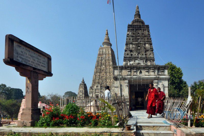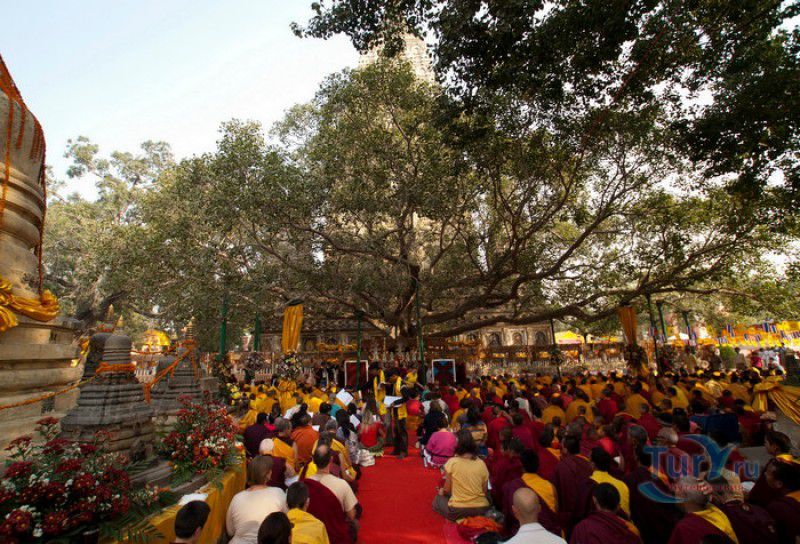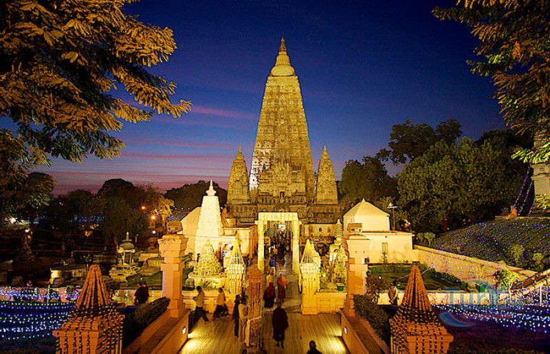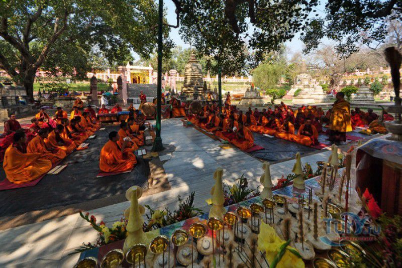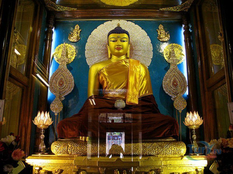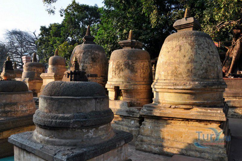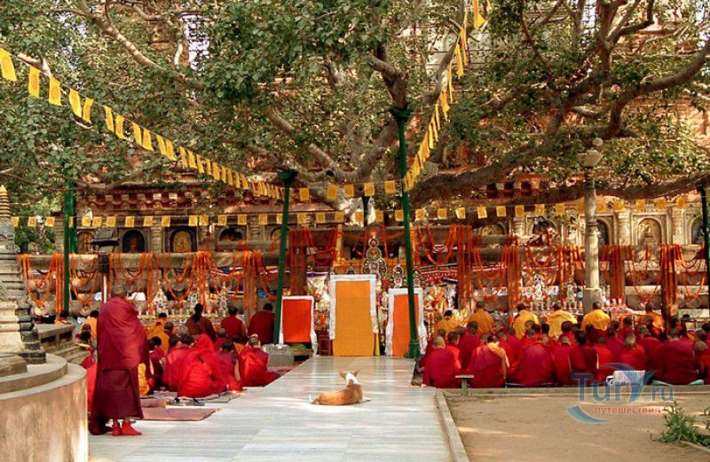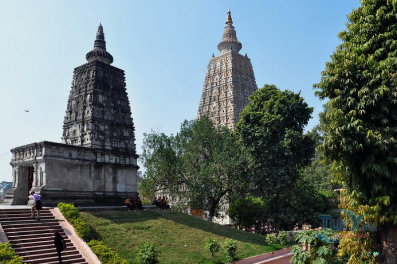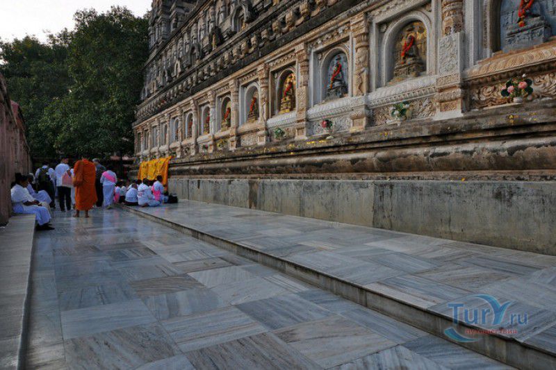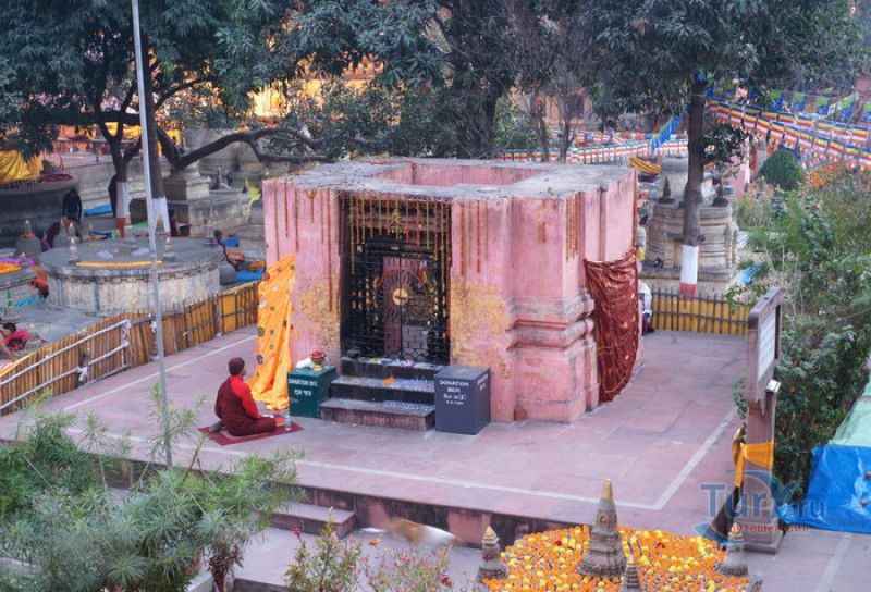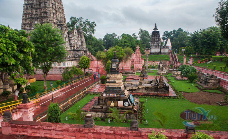 Храм Махабодхи расположен в северо-восточной части Индии, в штате Бихар, в городе Бодх-Гая. Махабодхи - один из самых знаменитых и почитаемых в мире буддистских храмов, он построен на том самом месте, где, по преданию, в 589 году до нашей эры основатель буддизма Сиддхартха Гаутама, во время медитации под священным деревом Бодхи, достиг Просветления и стал Буддой. Храм был возведен в 260 году до нашей эры по приказу императора Ашоки Маурьи, решившего увековечить это священное место для потомков. Первоначально храм представлял собой небольшой открытый павильон с "Алмазным Троном" - Ваджрасаной. От первого храма до наших дней практически ничего не сохранилось, он был значительно расширен и перестроен в V-VI веках. Храм Махабодхи представляет собой величественную 55-метровую пирамидальную башню (ступу), окружённую четырьмя меньшими башнями, построенными по подобию главной башни. Храм полностью выполнен из кирпича, толщина кладки достигает пяти метров, а кирпичи настолько плотно пригнаны друг к другу, что цемент при строительстве использовался в минимальных количествах. Поверхность здания оштукатурена, на нижнем уровне есть множество ниш со статуями Будд и Бодхисаттв, верхняя часть украшена резными панелями, рельефами и декоративной лепниной. Со всех сторон здание окружено каменными перилами двухметровой высоты. Наиболее старая часть перил, датируемая 150 годом до нашей эры, выполнена из песчаника. На перилах вырезаны изображения богини изобилия, процветания и богатства Лакшми, купающейся со слонами, и бога Солнца Сурьи, едущего в колеснице, запряжённой четвёркой лошадей. Более новая часть перил выполнена из необработанного гранита в IV-VI веках, во время эпохи Гуптов, перила украшены резными изображениями цветков лотоса и Гаруды - ездовой птицы бога Вишну. Внутри ступы есть два помещения. В первом из них находятся гранитные плиты, на которых выбиты имена и портреты членов королевских семейств Непала и Мьянмы (Бирмы), покровительствующих храму Махабодхи. Вторая комната - это святая святых храма, в ней установлен алтарь с позолоченной статуей Будды, сидящего в позе Ваджрасана. Рядом с западной стеной храма растёт священное дерево Бодхи. Того дерева, под которым достиг Просветления Будда, давно уже нет - по преданию, оно было срублено самим Ашокой, когда он ещё не был буддистом. Молодой император, выполняя обряд подношения индуистским богам, поджёг ветви и листья дерева Бо, но они не горели, а только сияли в огне. Раскаявшись, Ашока стал поливать корни священного дерева молоком с пряностями, и уже на следующий день дерево Бо "воскресло". В VII веке дерево приказал срубить король Шашанка, преследовавший буддистов. Король велел выкорчевать и сжечь дерево Бодхи, а оставшиеся в земле корни поливать сахарным сиропом, чтобы их источили муравьи. Но самые глубокие корни не были повреждены, и через время из них снова выросло дерево Бодхи. Это дерево пережило и мусульманское нашествие, и изгнание из Бодх-Гая буддистов, и разрушение храма Махабодхи. Оно рухнуло от старости в 1876 году, не устояв перед сильной бурей, пронесшейся над Бодх-Гая. Но на месте упавшего дерева тут же зазеленели новые побеги, из которых выросло нынешнее священное дерево Бо, высота которого - 24 метра. В XIII столетии северо-восток Индии был завоёван мусульманами, и на смену буддизму при