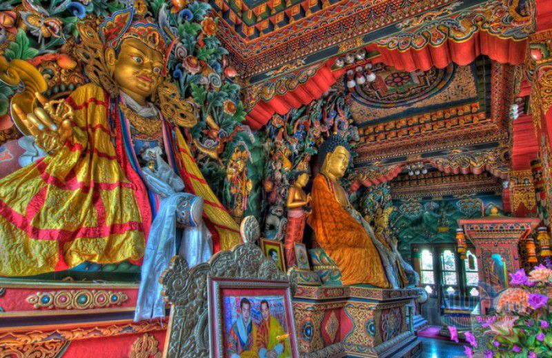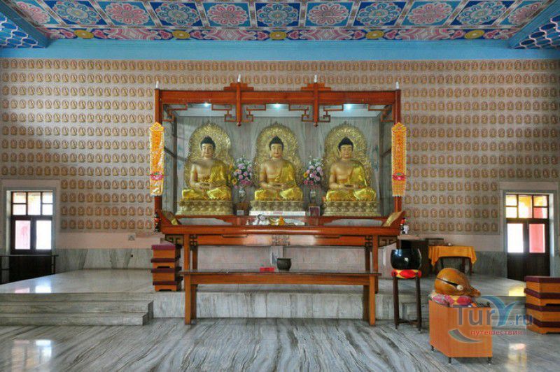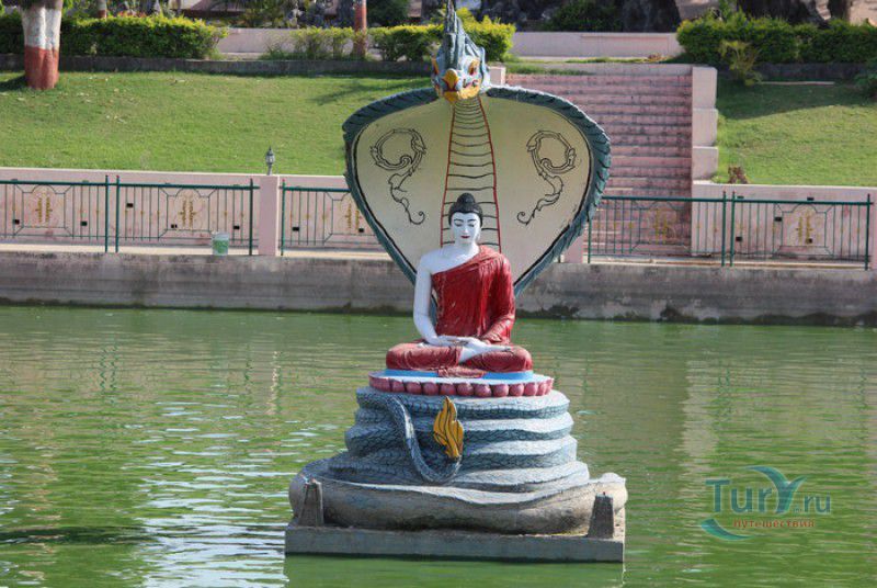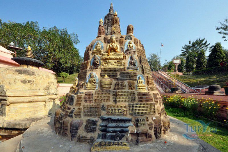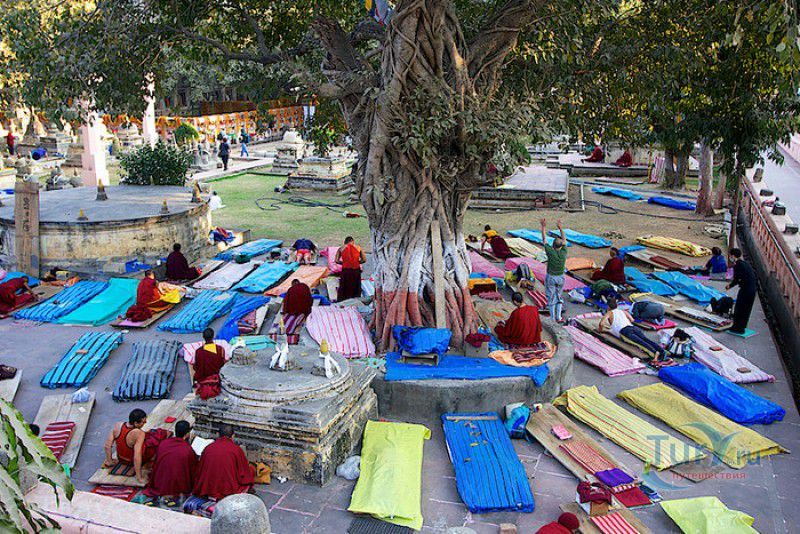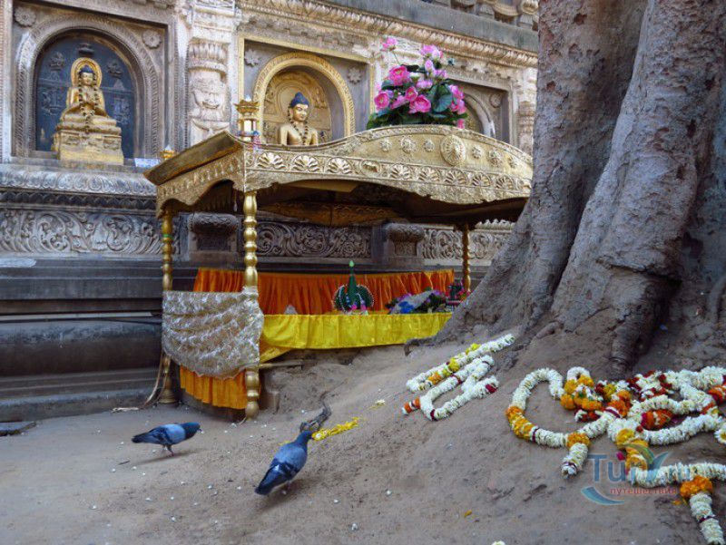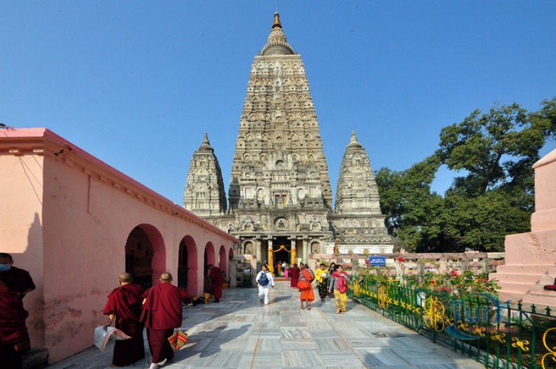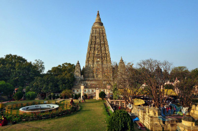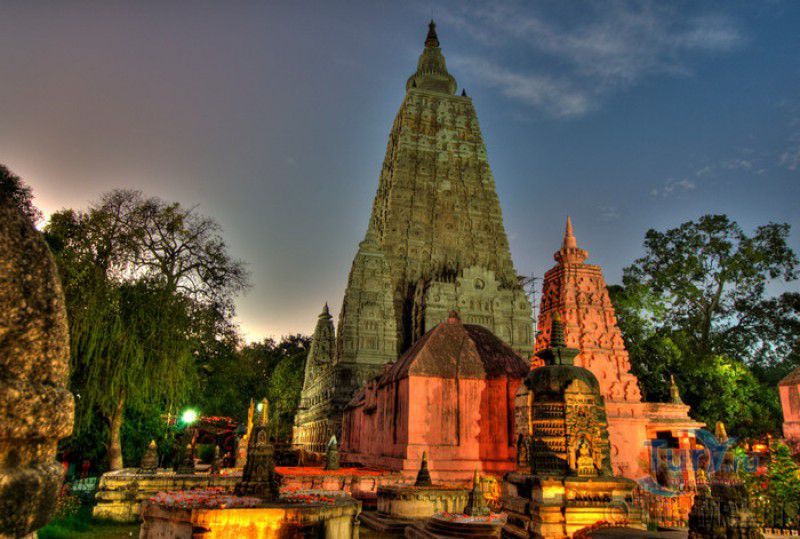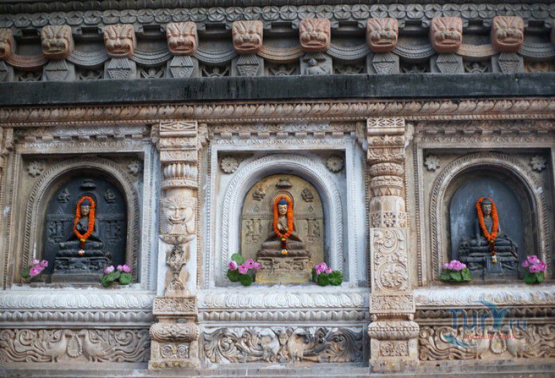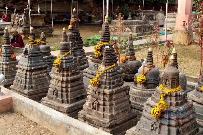 Храм Махабодхи расположен в северо-восточной части Индии, в штате Бихар, в городе Бодх-Гая. Махабодхи - один из самых знаменитых и почитаемых в мире буддистских храмов, он построен на том самом месте, где, по преданию, в 589 году до нашей эры основатель буддизма Сиддхартха Гаутама, во время медитации под священным деревом Бодхи, достиг Просветления и стал Буддой. Храм был возведен в 260 году до нашей эры по приказу императора Ашоки Маурьи, решившего увековечить это священное место для потомков. Первоначально храм представлял собой небольшой открытый павильон с "Алмазным Троном" - Ваджрасаной. От первого храма до наших дней практически ничего не сохранилось, он был значительно расширен и перестроен в V-VI веках. Храм Махабодхи представляет собой величественную 55-метровую пирамидальную башню (ступу), окружённую четырьмя меньшими башнями, построенными по подобию главной башни. Храм полностью выполнен из кирпича, толщина кладки достигает пяти метров, а кирпичи настолько плотно пригнаны друг к другу, что цемент при строительстве использовался в минимальных количествах. Поверхность здания оштукатурена, на нижнем уровне есть множество ниш со статуями Будд и Бодхисаттв, верхняя часть украшена резными панелями, рельефами и декоративной лепниной. Со всех сторон здание окружено каменными перилами двухметровой высоты. Наиболее старая часть перил, датируемая 150 годом до нашей эры, выполнена из песчаника. На перилах вырезаны изображения богини изобилия, процветания и богатства Лакшми, купающейся со слонами, и бога Солнца Сурьи, едущего в колеснице, запряжённой четвёркой лошадей. Более новая часть перил выполнена из необработанного гранита в IV-VI веках, во время эпохи Гуптов, перила украшены резными изображениями цветков лотоса и Гаруды - ездовой птицы бога Вишну. Внутри ступы есть два помещения. В первом из них находятся гранитные плиты, на которых выбиты имена и портреты членов королевских семейств Непала и Мьянмы (Бирмы), покровительствующих храму Махабодхи. Вторая комната - это святая святых храма, в ней установлен алтарь с позолоченной статуей Будды, сидящего в позе Ваджрасана. Рядом с западной стеной храма растёт священное дерево Бодхи. Того дерева, под которым достиг Просветления Будда, давно уже нет - по преданию, оно было срублено самим Ашокой, когда он ещё не был буддистом. Молодой император, выполняя обряд подношения индуистским богам, поджёг ветви и листья дерева Бо, но они не горели, а только сияли в огне. Раскаявшись, Ашока стал поливать корни священного дерева молоком с пряностями, и уже на следующий день дерево Бо "воскресло". В VII веке дерево приказал срубить король Шашанка, преследовавший буддистов. Король велел выкорчевать и сжечь дерево Бодхи, а оставшиеся в земле корни поливать сахарным сиропом, чтобы их источили муравьи. Но самые глубокие корни не были повреждены, и через время из них снова выросло дерево Бодхи. Это дерево пережило и мусульманское нашествие, и изгнание из Бодх-Гая буддистов, и разрушение храма Махабодхи. Оно рухнуло от старости в 1876 году, не устояв перед сильной бурей, пронесшейся над Бодх-Гая. Но на месте упавшего дерева тут же зазеленели новые побеги, из которых выросло нынешнее священное дерево Бо, высота которого - 24 метра. В XIII столетии северо-восток Индии был завоёван мусульманами, и на смену буддизму при