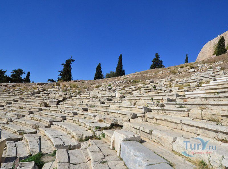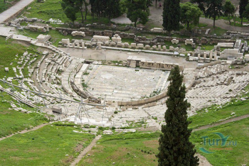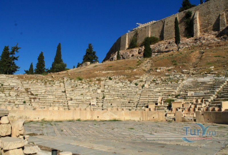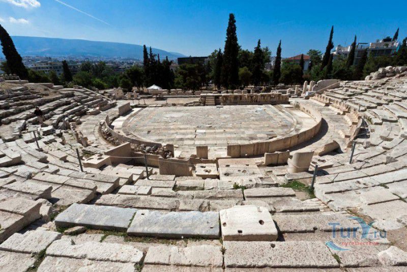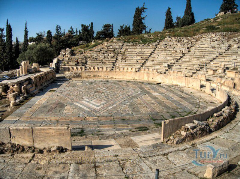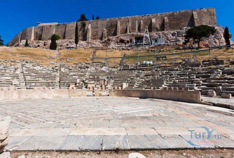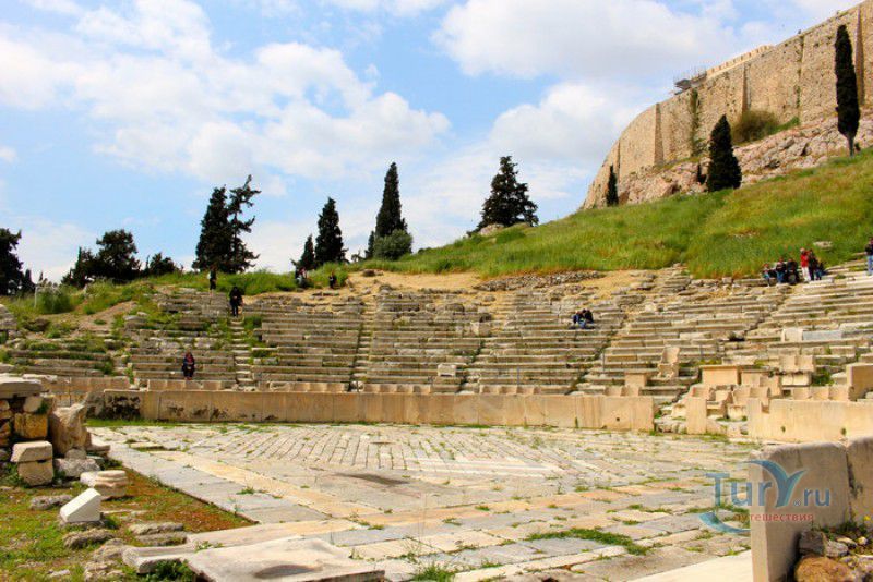 Театр Диониса является одним из древнейших театров в мире, его руины расположены в историческом центре города Афины, на юго-восточном склоне Акрополя, к северу от храма Диониса. Театр был построен в V веке до нашей эры, и изначально его сцена и сиденья были деревянными. В те времена театр Диониса служил ареной для проведения театральных состязаний, проходивших во время празднования Великих и Малых Дионисий - одних из основных празднеств в Древней Греции, посвящённых богу Дионису. На сцене театра проходили выступления певцов и танцоров, ставились драматические пьесы (трагедии и комедии), авторы которых состязались за право получить главный приз - треножник Диониса. Обычно в состязаниях принимали участие три автора, каждый из которых должен был представить на суд зрителей три трагедии, одну сатирическую драму и одну комедию. Именно на сцене театра Диониса впервые были поставлены пьесы великих древнегреческих драматургов Эсхила, Софокла, Эврипида, Аристофана и Менандра. Во второй половине IV века до нашей эры, при правителе Афин Ликурге, театр Диониса был реконструирован - деревянные сцена и сиденья для зрителей были заменены на каменные, построены лестничные проходы, делящие зрительный зал на трибуны, а для сенаторов, жрецов храма Диониса и других представителей знати в первом ряду были установлены 67 мраморных кресел с высеченными на них именами и должностями владельцев. В театре не было кровли - актёры, хор и зрители располагались под открытым небом, а спектакли проходили в светлое время суток. В 86 году до нашей эры Афины были захвачены войсками римского императора Луция Корнелия Суллы, во время правления которого Акрополь и театр Диониса были сильно разрушены. Во второй половине I века, при императоре Нероне, в театре были построены новая сцена, вымощенная мраморными плитами, оркестр в форме полукруга и скульптурный фриз со статуями сатиров. Сам император Нерон нередко выступал со сцены театра со своими пьесами и стихами, а также принимал участие в соревнованиях поэтов. Часто посещал театр Диониса и римский император Адриан, страстный любитель греческого театра и поэзии - в центре второго зрительного ряда для него был установлен мраморный трон. При римлянах в театре Диониса проходили цирковые представления и бои гладиаторов, для того чтобы оградить зрителей от сражающихся на смерть воинов, перед первым рядом был возведен высокий бортик, сохранившийся до наших дней. После того, как в 267 году Афины были захвачены герулами (варварами), на сцене театра Диониса более не выступали поэты и не ставились пьесы. В середине V века в восточной части театра была возведена христианская базилика, а сам театр стал своеобразным внутренним двором храма. В Средние века театр Диониса и другие античные памятники Акрополя были заброшены, постепенно разрушались и покрывались слоем земли. Руины театра Диониса были раскопаны археологами в 1838 году, в 2010-2015 годах была проведена реставрация театра, на которую было выделено 6 миллионов евро. В ходе работ были восстановлены каменные сиденья, укреплены несущие конструкции и другие части сооружения. В 1987 году в составе Афинского Акрополя театр Диониса внесен в список Всемирного наследия ЮНЕСКО.