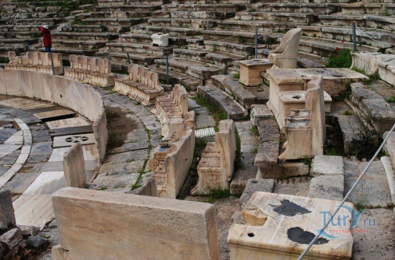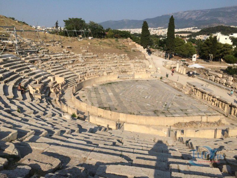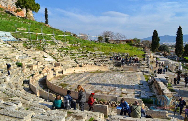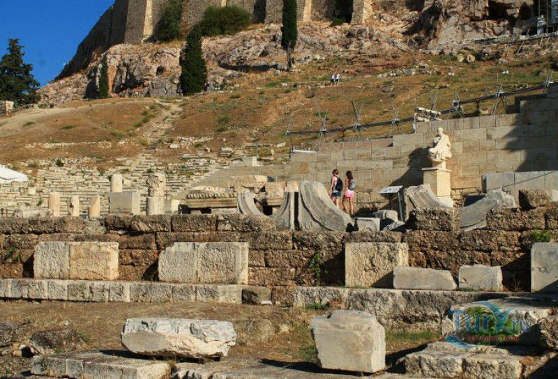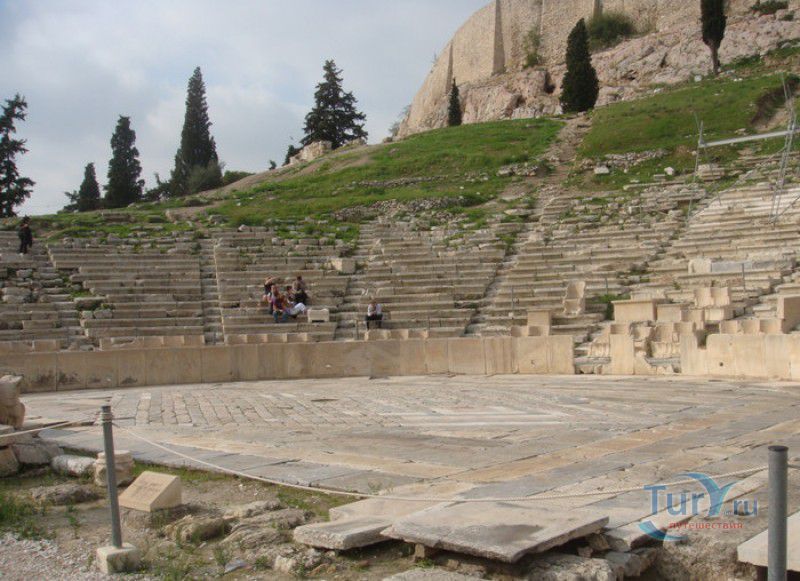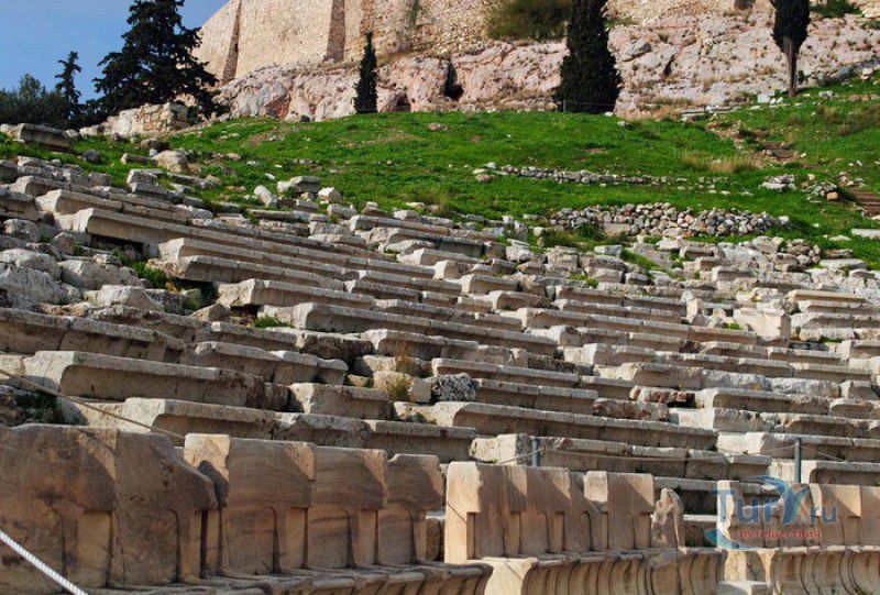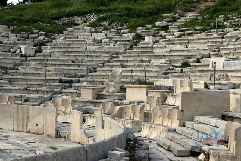 Театр Диониса является одним из древнейших театров в мире, его руины расположены в историческом центре города Афины, на юго-восточном склоне Акрополя, к северу от храма Диониса. Театр был построен в V веке до нашей эры, и изначально его сцена и сиденья были деревянными. В те времена театр Диониса служил ареной для проведения театральных состязаний, проходивших во время празднования Великих и Малых Дионисий - одних из основных празднеств в Древней Греции, посвящённых богу Дионису. На сцене театра проходили выступления певцов и танцоров, ставились драматические пьесы (трагедии и комедии), авторы которых состязались за право получить главный приз - треножник Диониса. Обычно в состязаниях принимали участие три автора, каждый из которых должен был представить на суд зрителей три трагедии, одну сатирическую драму и одну комедию. Именно на сцене театра Диониса впервые были поставлены пьесы великих древнегреческих драматургов Эсхила, Софокла, Эврипида, Аристофана и Менандра. Во второй половине IV века до нашей эры, при правителе Афин Ликурге, театр Диониса был реконструирован - деревянные сцена и сиденья для зрителей были заменены на каменные, построены лестничные проходы, делящие зрительный зал на трибуны, а для сенаторов, жрецов храма Диониса и других представителей знати в первом ряду были установлены 67 мраморных кресел с высеченными на них именами и должностями владельцев. В театре не было кровли - актёры, хор и зрители располагались под открытым небом, а спектакли проходили в светлое время суток. В 86 году до нашей эры Афины были захвачены войсками римского императора Луция Корнелия Суллы, во время правления которого Акрополь и театр Диониса были сильно разрушены. Во второй половине I века, при императоре Нероне, в театре были построены новая сцена, вымощенная мраморными плитами, оркестр в форме полукруга и скульптурный фриз со статуями сатиров. Сам император Нерон нередко выступал со сцены театра со своими пьесами и стихами, а также принимал участие в соревнованиях поэтов. Часто посещал театр Диониса и римский император Адриан, страстный любитель греческого театра и поэзии - в центре второго зрительного ряда для него был установлен мраморный трон. При римлянах в театре Диониса проходили цирковые представления и бои гладиаторов, для того чтобы оградить зрителей от сражающихся на смерть воинов, перед первым рядом был возведен высокий бортик, сохранившийся до наших дней. После того, как в 267 году Афины были захвачены герулами (варварами), на сцене театра Диониса более не выступали поэты и не ставились пьесы. В середине V века в восточной части театра была возведена христианская базилика, а сам театр стал своеобразным внутренним двором храма. В Средние века театр Диониса и другие античные памятники Акрополя были заброшены, постепенно разрушались и покрывались слоем земли. Руины театра Диониса были раскопаны археологами в 1838 году, в 2010-2015 годах была проведена реставрация театра, на которую было выделено 6 миллионов евро. В ходе работ были восстановлены каменные сиденья, укреплены несущие конструкции и другие части сооружения. В 1987 году в составе Афинского Акрополя театр Диониса внесен в список Всемирного наследия ЮНЕСКО.